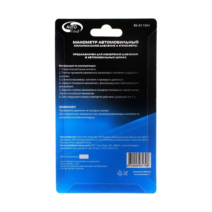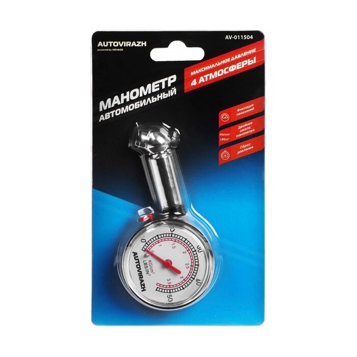Манометр шинный Autovirazh AV-011504, в блистере