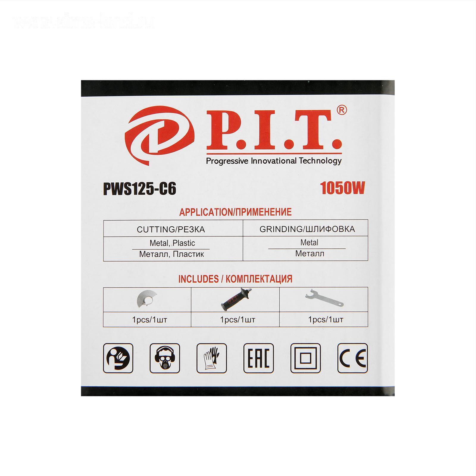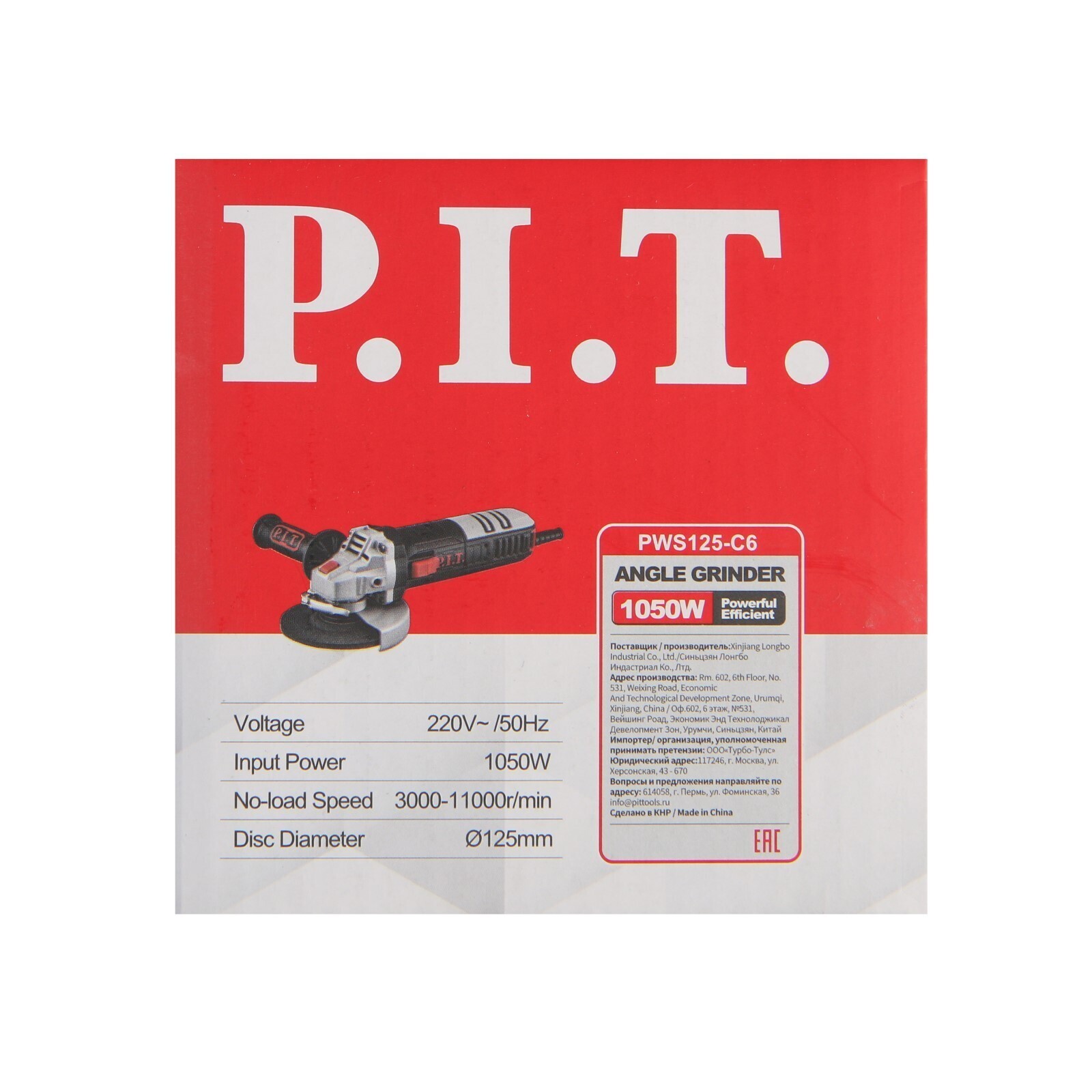 Угловая шлифмашина P.I.T. PWS125-C6, регулировка оборотов, 1050Вт, 125 мм, 3000-11000 об/мин