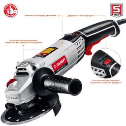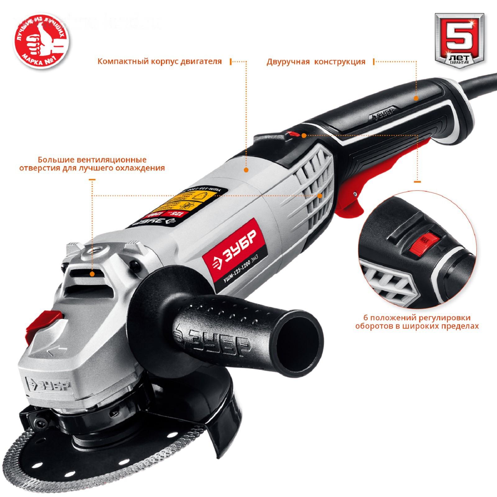 Углошлифовальная машина "ЗУБР" УШМ-125-1200 ЭМ3, 1200 Вт, 3000-11000 об/мин, М14х125 мм