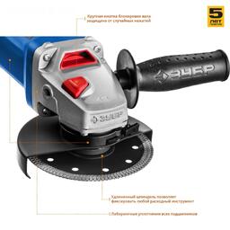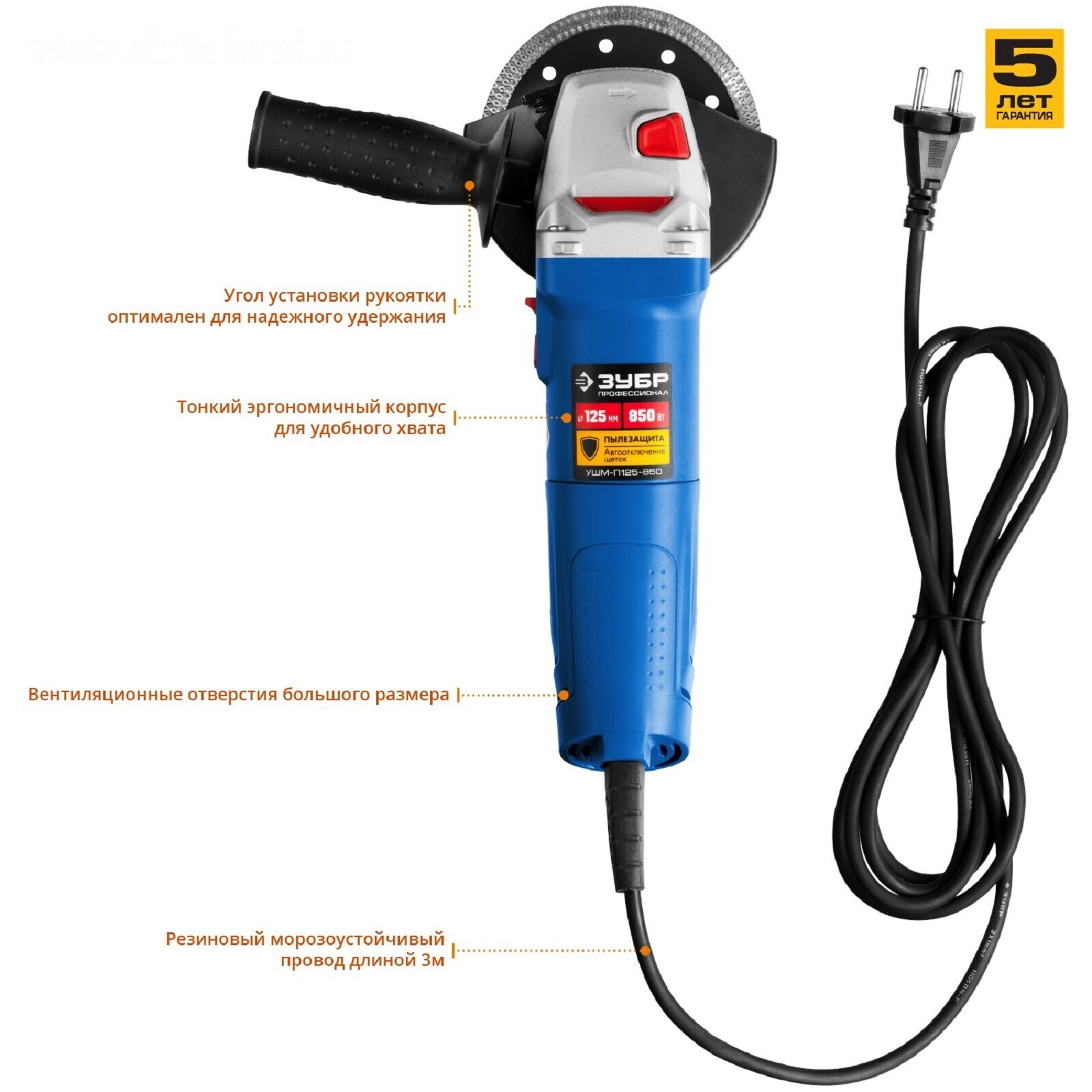 Углошлифовальная машина ЗУБР УШМ-П125-850, пылезащита, 125 мм, 11000 об/мин, 850 Вт