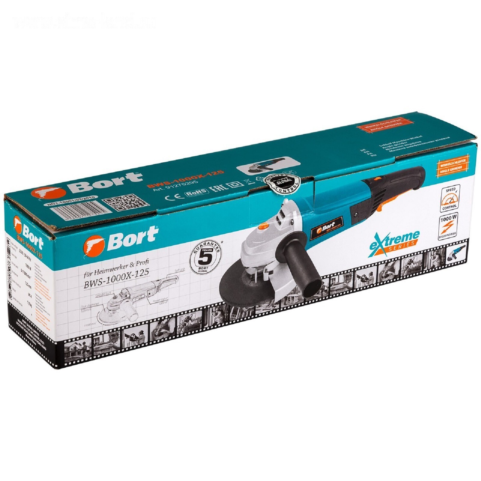 Угловая шлифмашина Bort BWS-1000X-125, 1000 Вт, 125х22.2 мм, M14, регулировка скорости