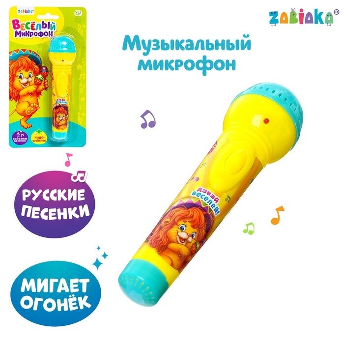 Микрофон музыкальный "Давай веселей", свет, звук, работает от батареек