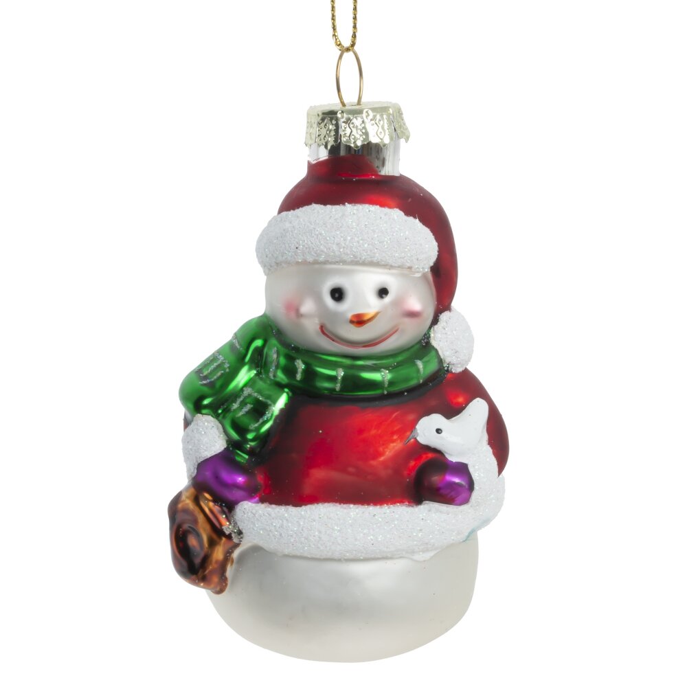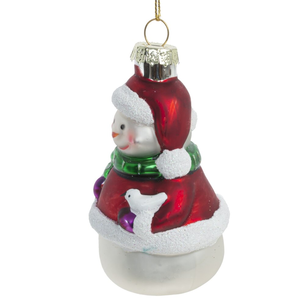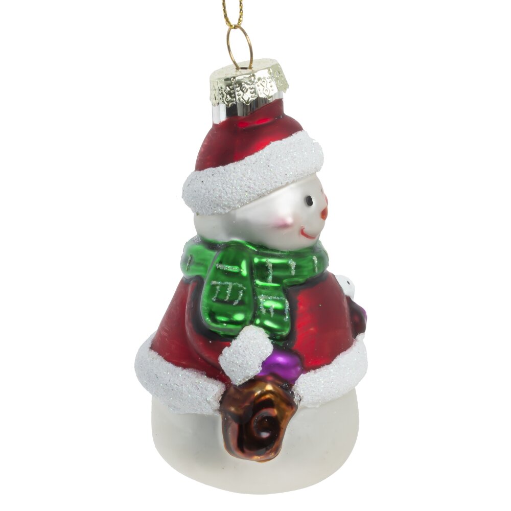 Вот она - настоящая классика елочных украшений. Стеклянная игрушка в форме яркого снеговика выполнена в традиционном стиле, дарит самое теплое ощущение настоящего новогоднего волшебства.