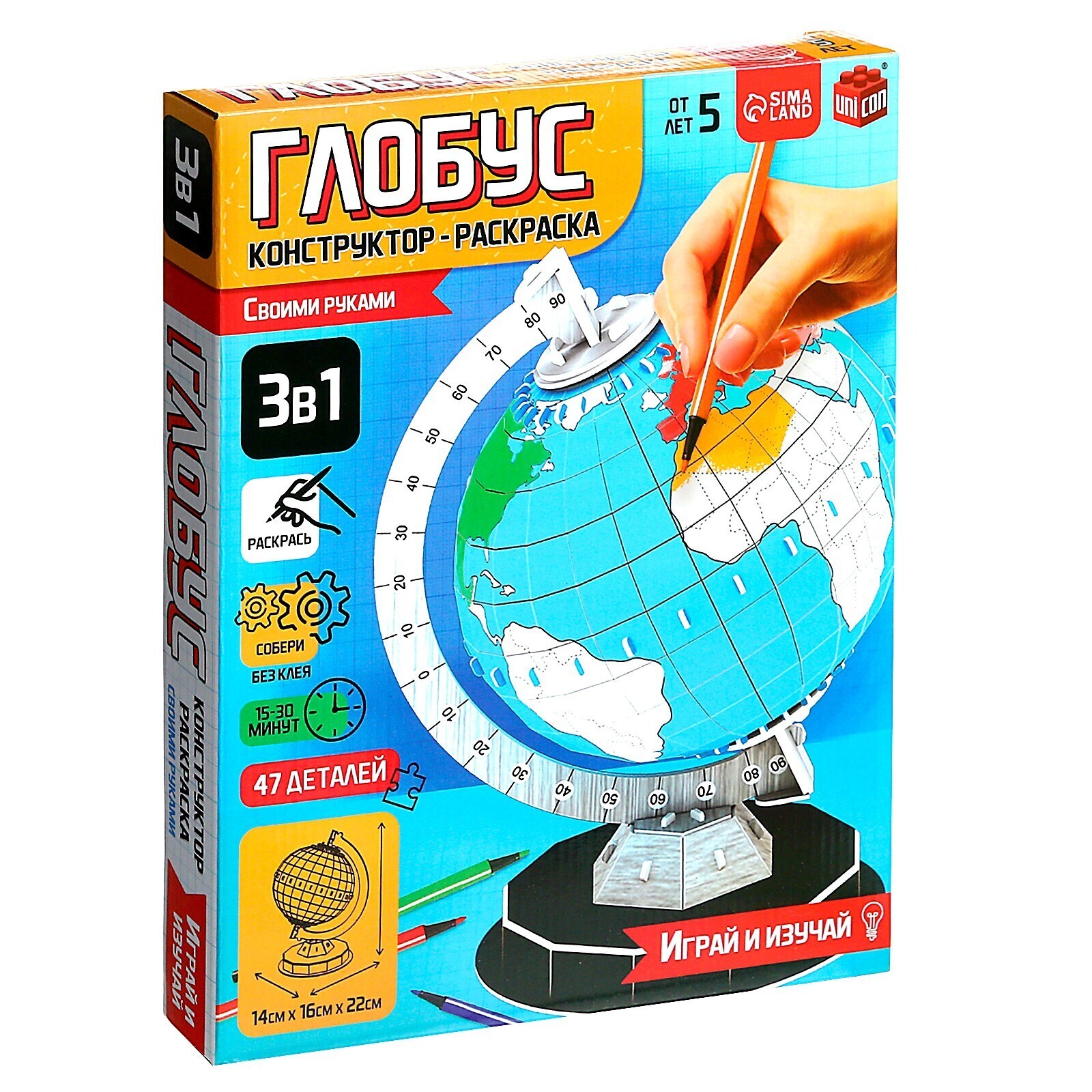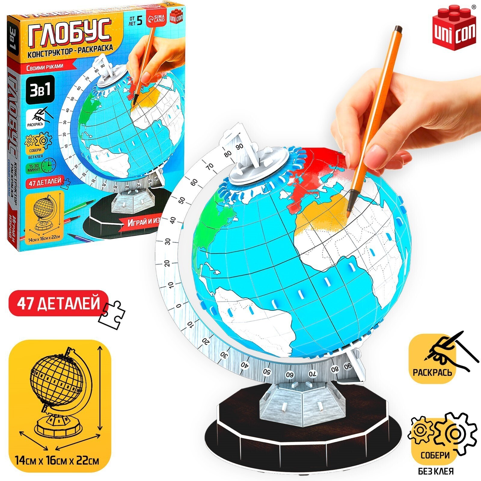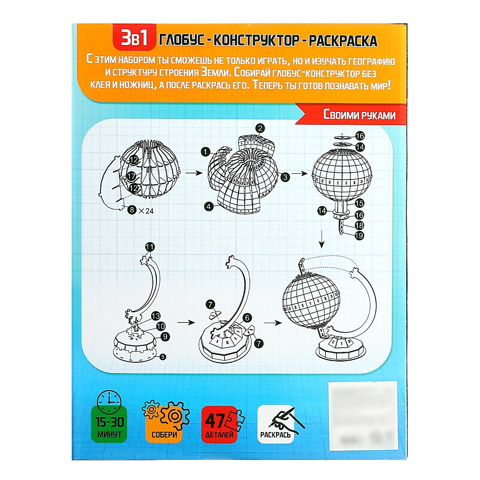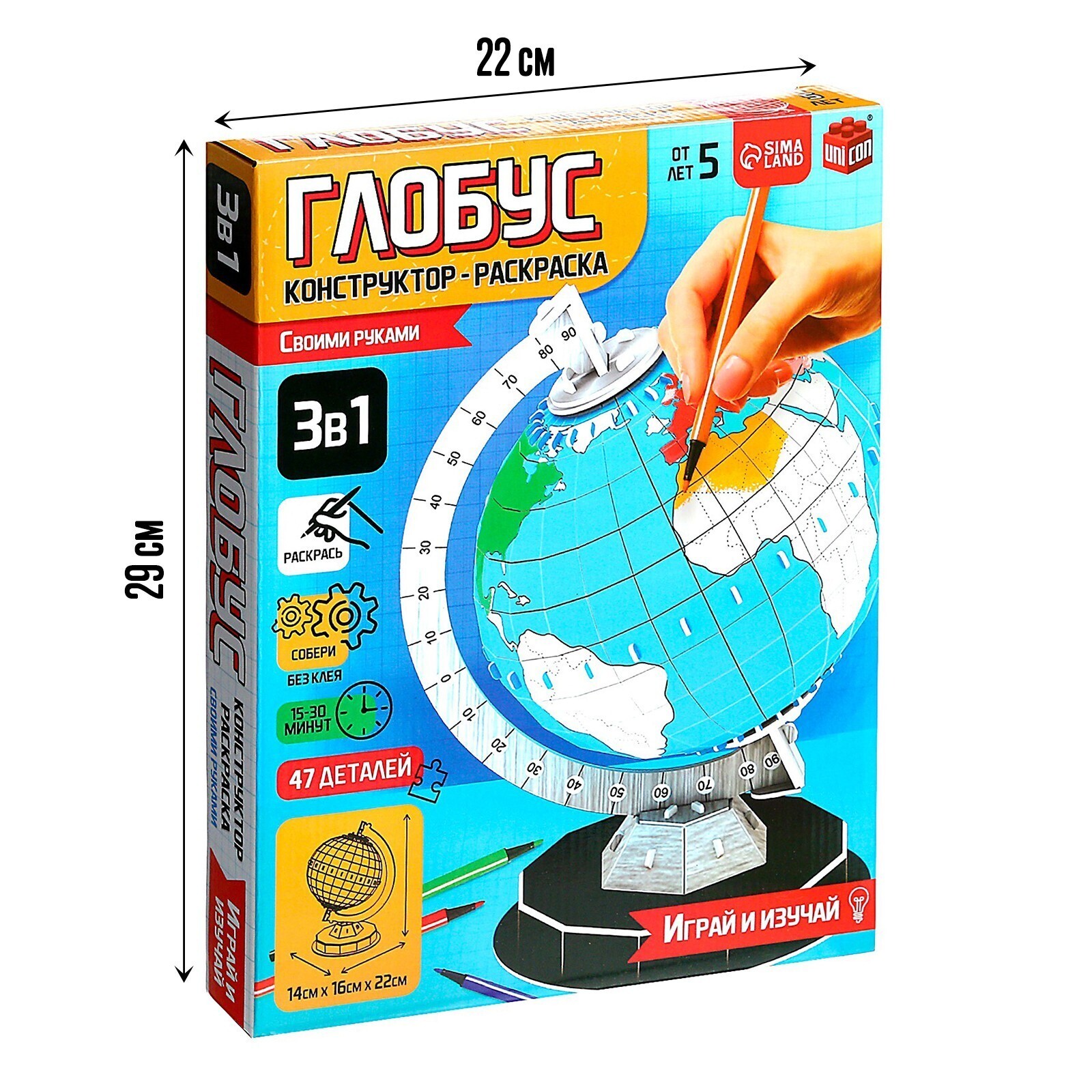 Конструктор «Глобус-раскраска», с фломастерами, 47 деталей