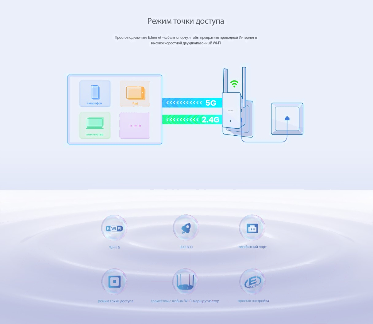 • Диапазон частот 2.4 ГГц, 5 ГГц