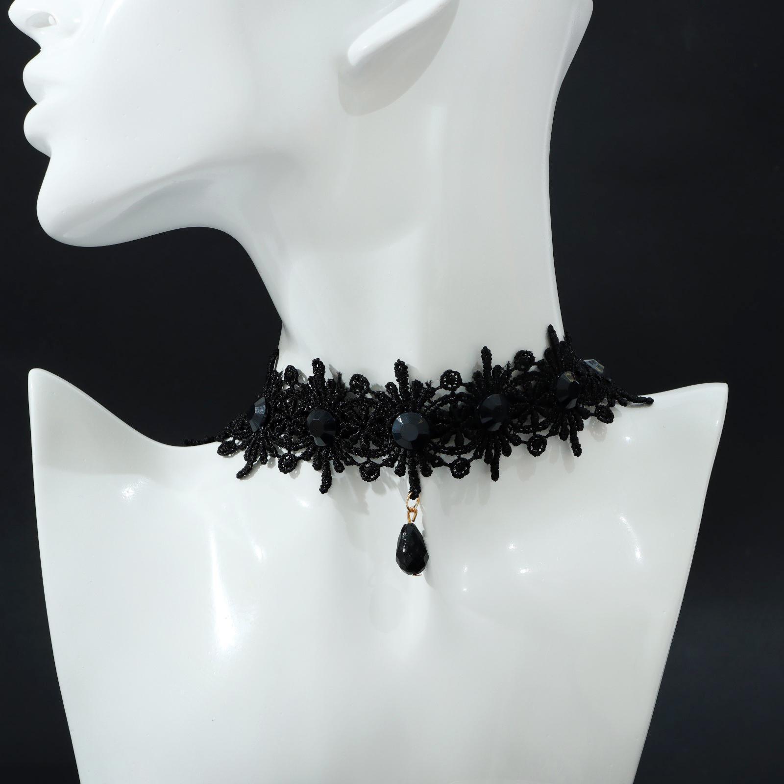 Чокер "Александрия" кружево, капля, цвет чёрный , длина 30см