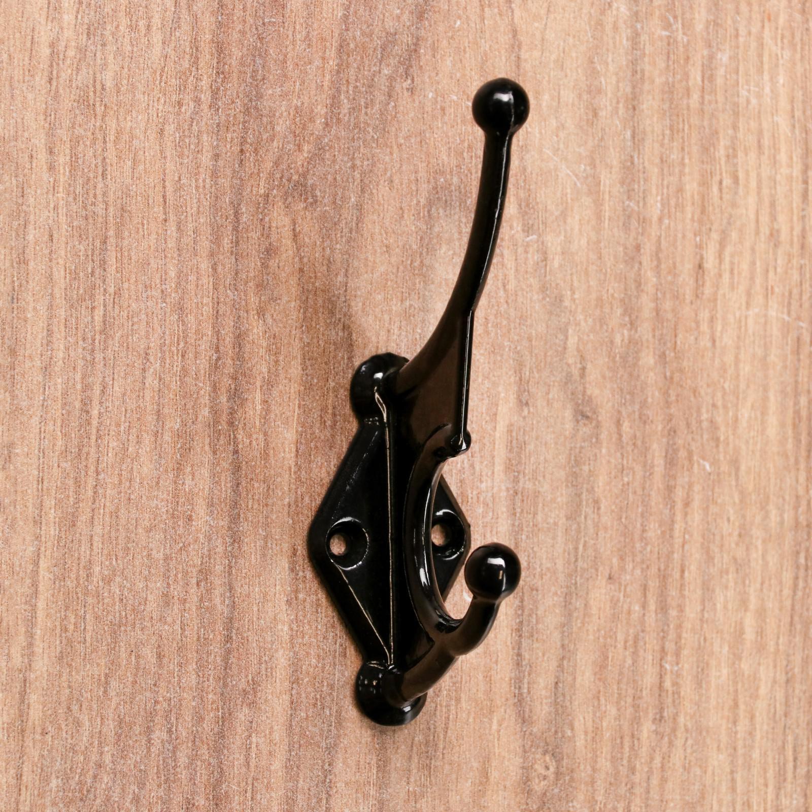 Крючок мебельный «Винтаж», двухрожковый, металл, цвет чёрный