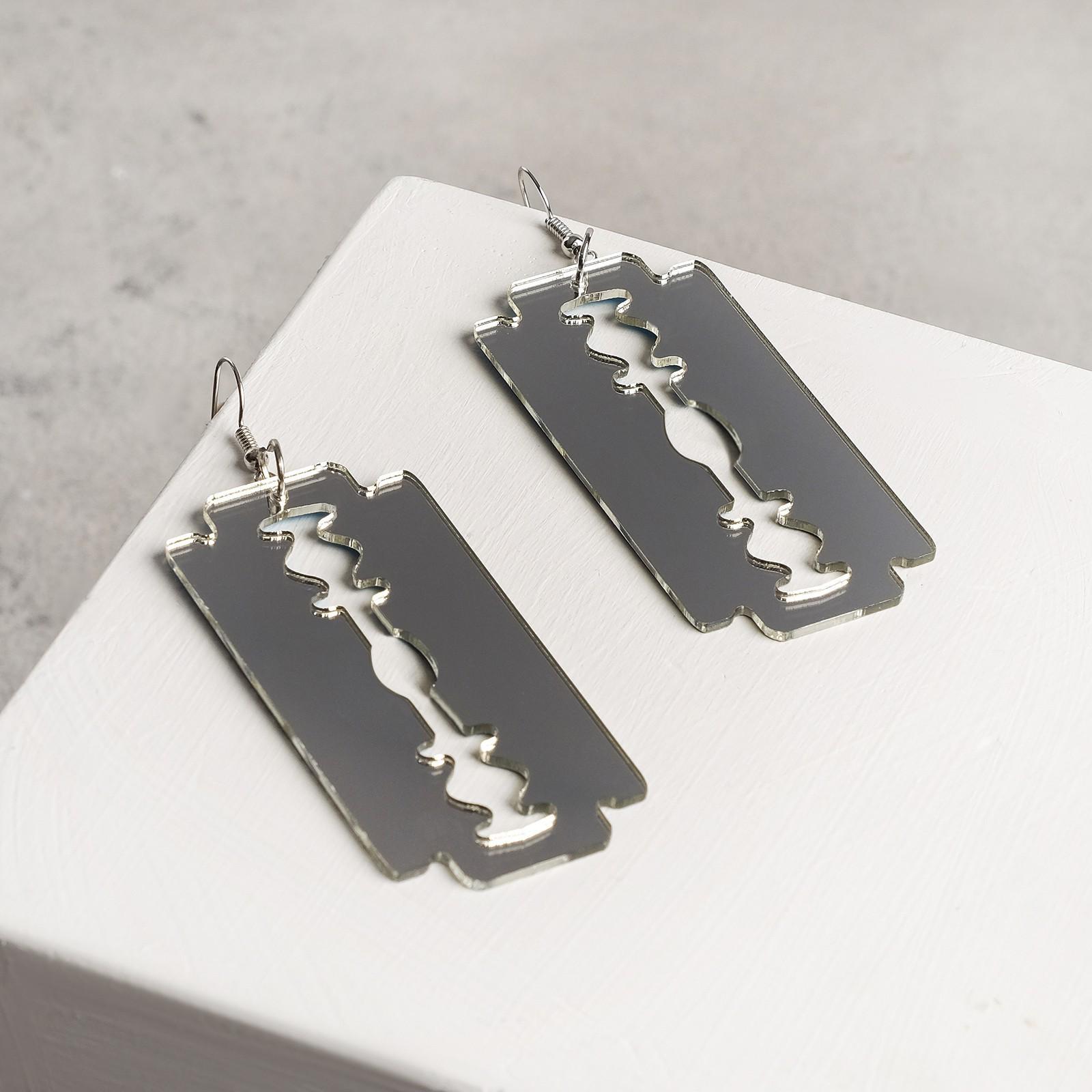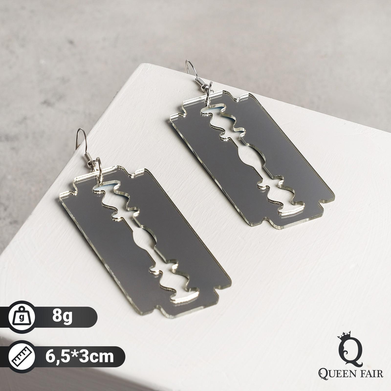 Серьги металл "Бритва", цвет серебро