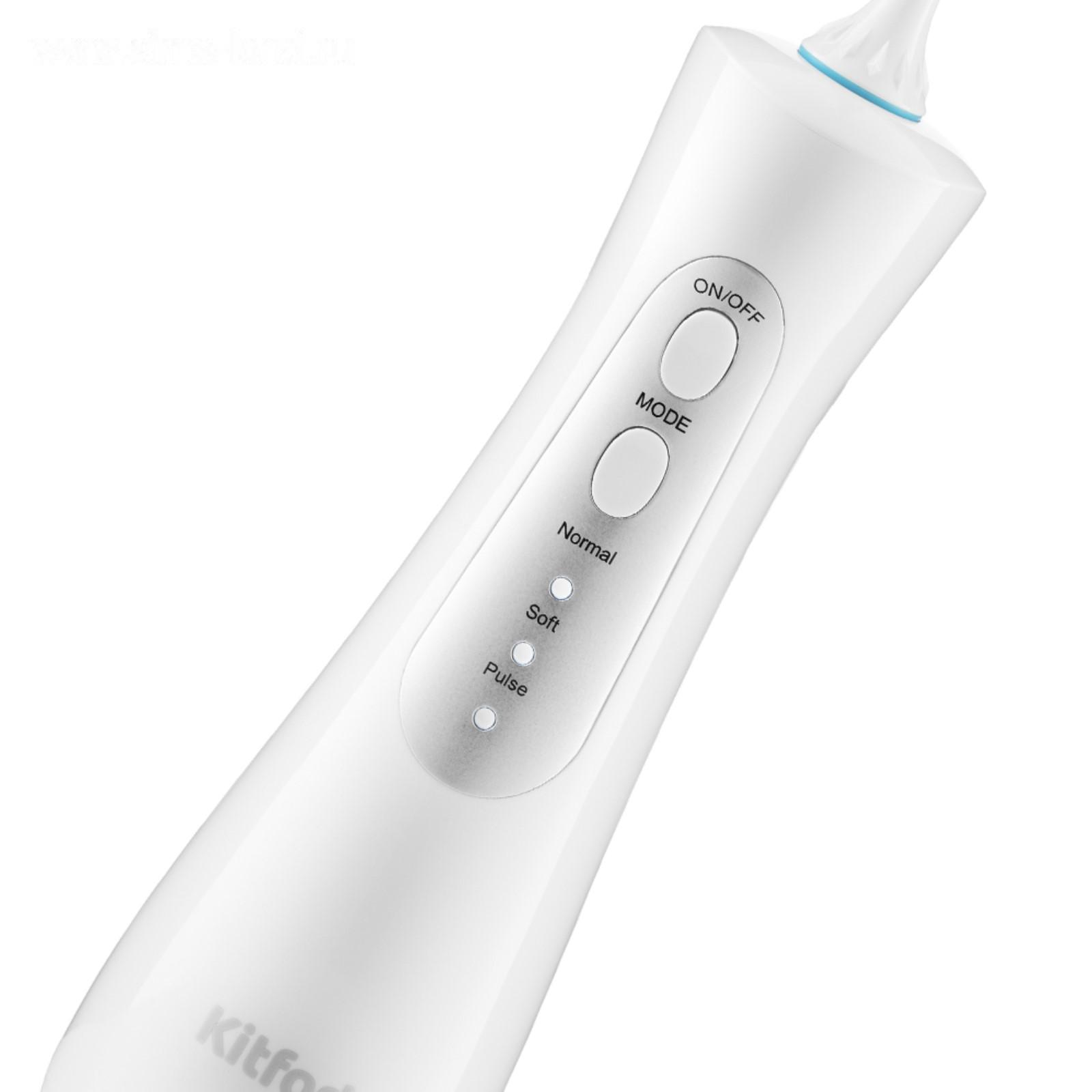 Ирригатор Kitfort КТ-2901, портативный, 5 Вт, 150 мл, 3 режима, 2 насадки, от АКБ, белый