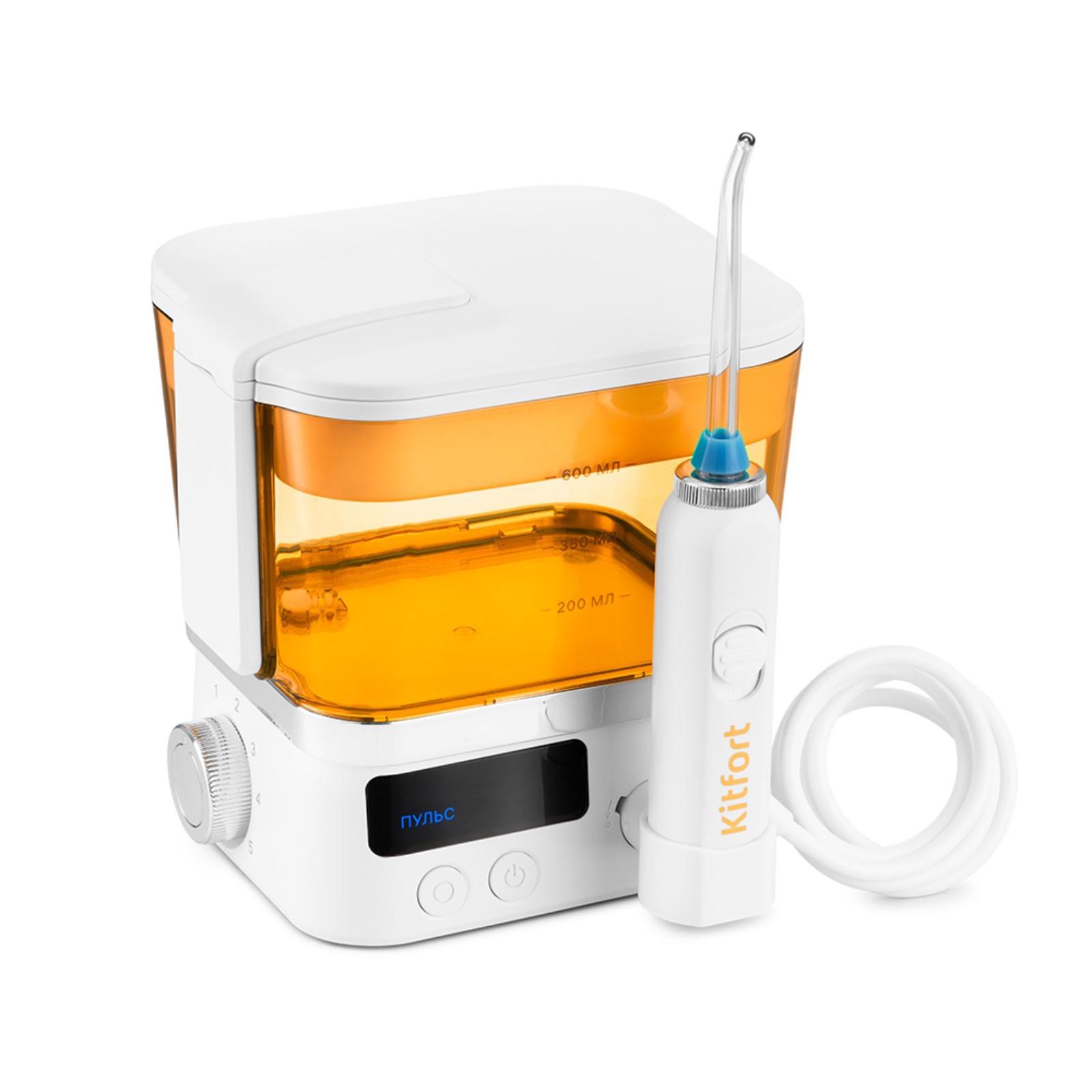 Ирригатор Kitfort КТ-2917-4, стационарный, 600 мл, 3 режима, 2 насадки, бело-оранжевый