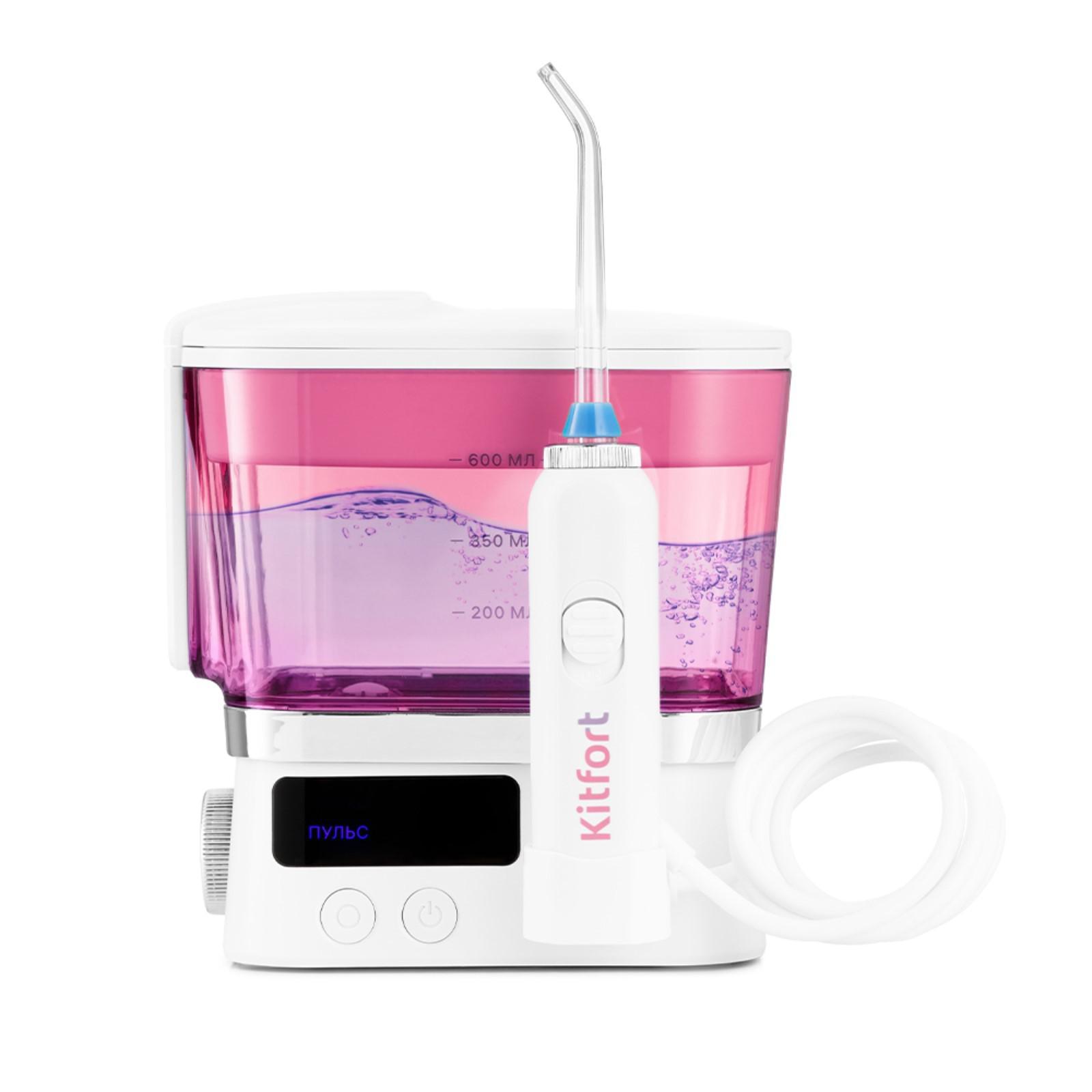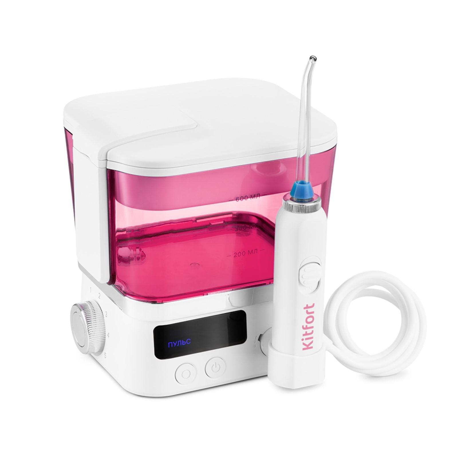 Ирригатор Kitfort КТ-2917-1, стационарный, 600 мл, 3 режима, 2 насадки, от АКБ, бело-розовый 77062