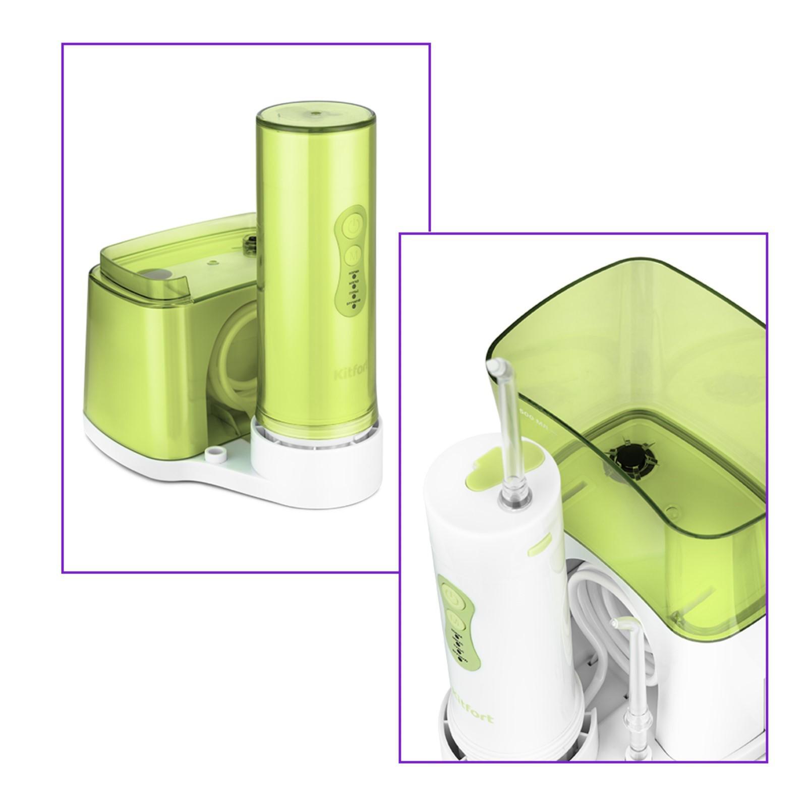 Ирригатор Kitfort КТ-2916-2, портативный, 500 мл, 4 режима, 5 насадок, от АКБ, бело-зелёный 770626