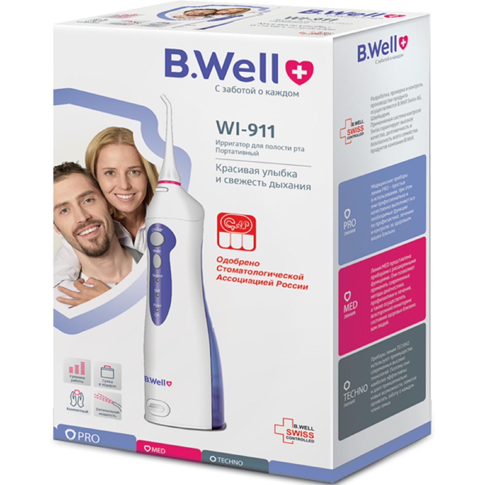 Ирригатор полости рта B.Well WI-911, портативный, 150 мл, 3 режима, 2 насадки, бело-голубой