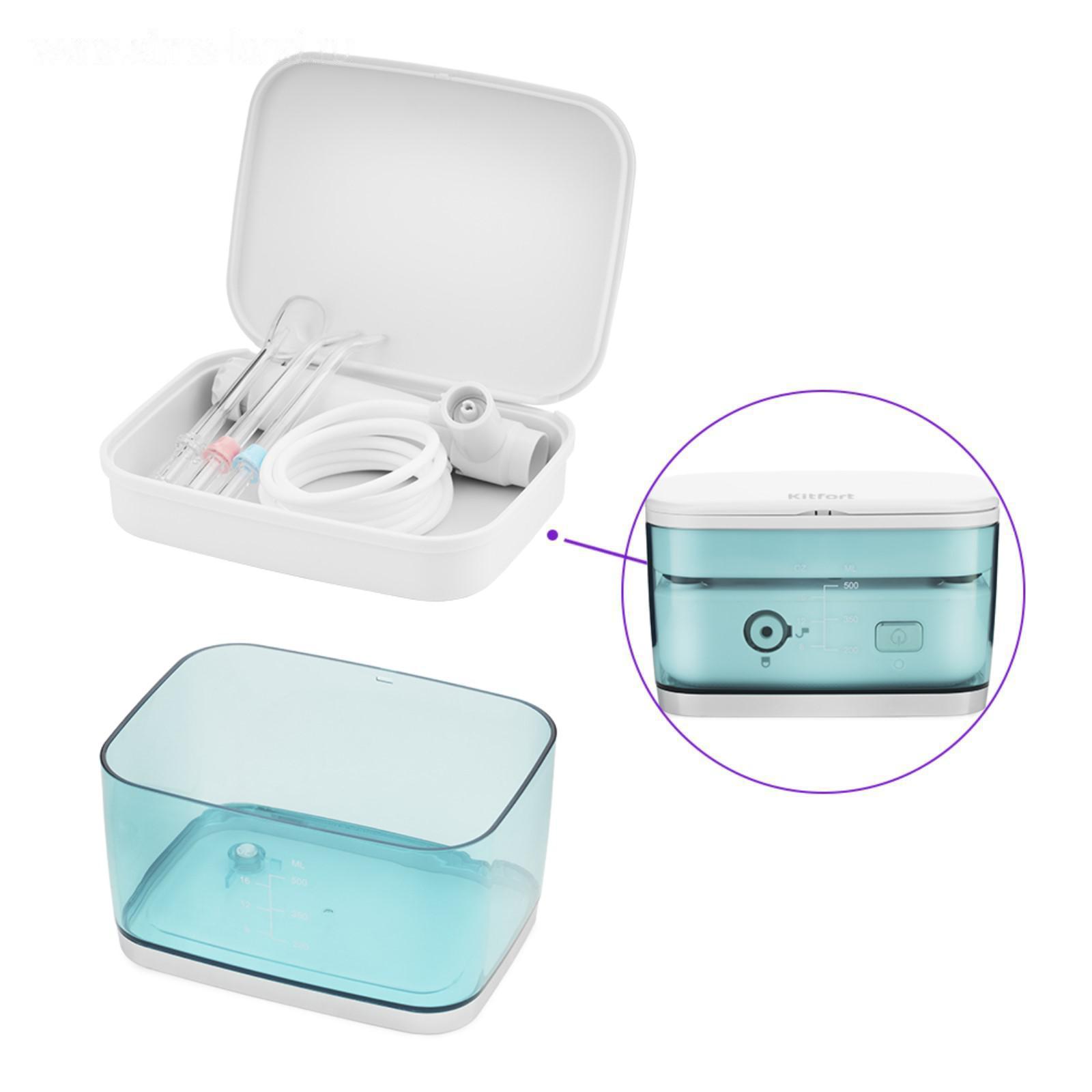 Ирригатор Kitfort КТ-2907, стационарный, 5 Вт, 500 мл, 5 режимов, 3 насадки, от АКБ, белый