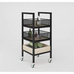 Парикмахерская тележка оснащена тремя глубокими ящиками, два из которых изготовлены из высококачественной стали. Прорезиненные колесные опоры со стопорами обеспечивают низкий уровень шума при передвижении.