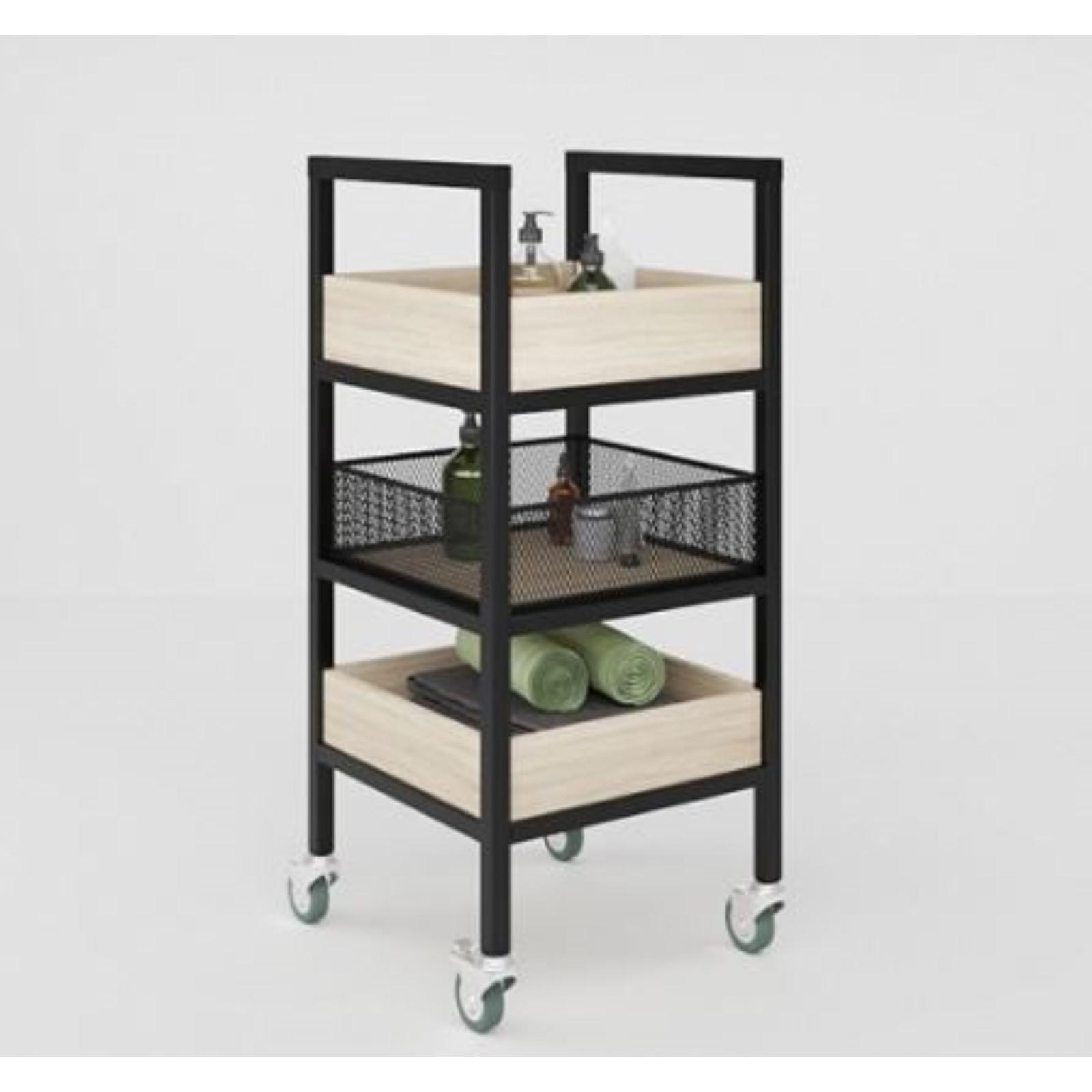Парикмахерская тележка изготовлена из качественной высокопрочной стали и влагостойкого ЛДСП. Модель оснащена тремя глубокими ящиками и прорезиненными колесными опорами со стопорами, снижающими уровень шума при передвижении.