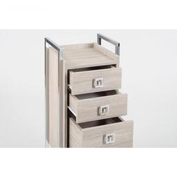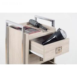Компактная тележка на колесах, отличающаяся стильным дизайном и хорошей вместительностью. Тележка выполнена из первичного ударопрочного пластика на металлическом хромированном каркасе. Имеется рабочая поверхность с бортиками. Закрытые боковины тележки защищают ящики от попадания в них пыли.