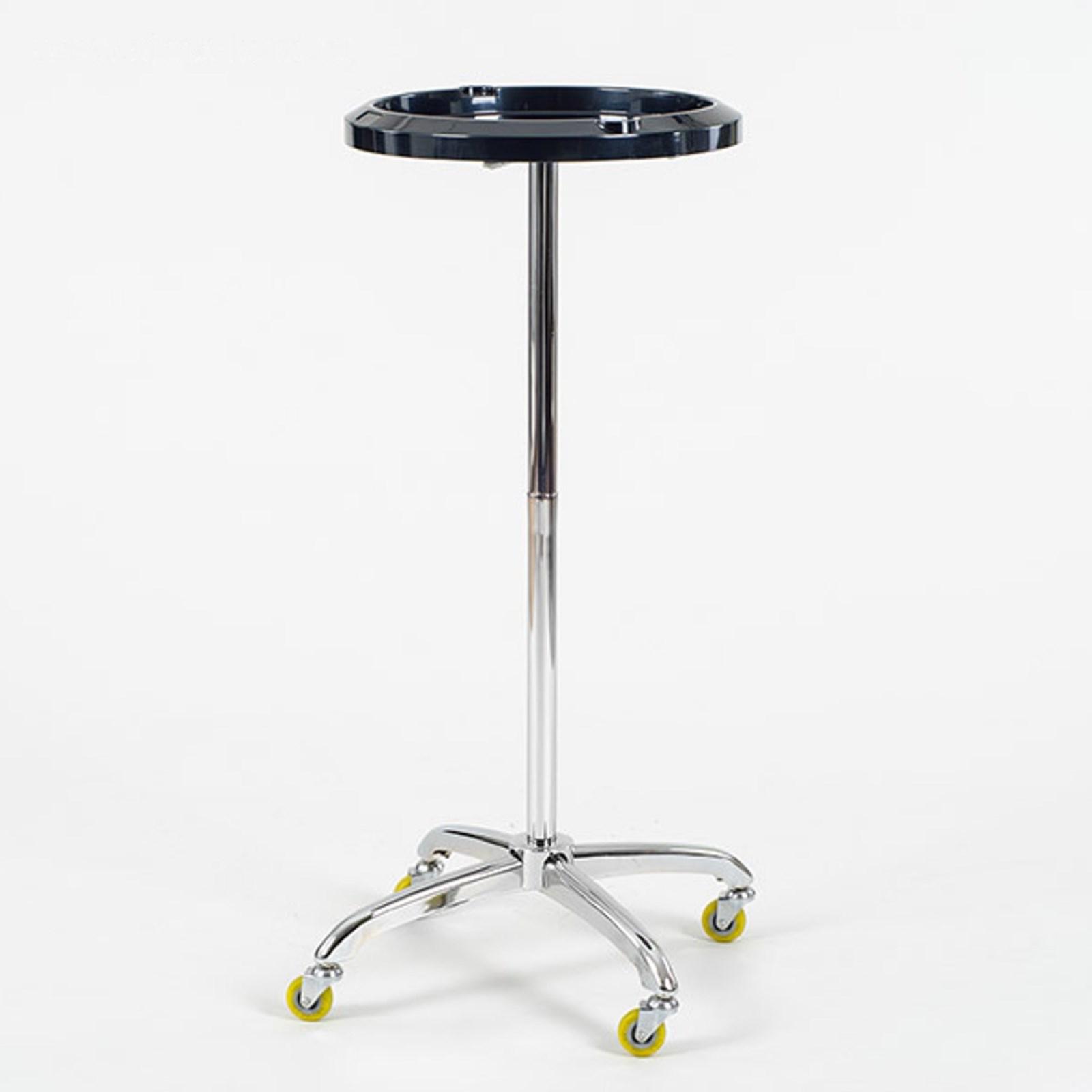 Тележка для аксессуаров NA00495 имеет четырехупорное хромированное основание и прорезиненные колеса, обеспечивающие бесшумное передвижение конструкции. Столешница из стойкого к воздействию косметических препаратов пластика оснащена небольшими бортиками и специальными отверстиями для ножниц, расчесок и кистей.