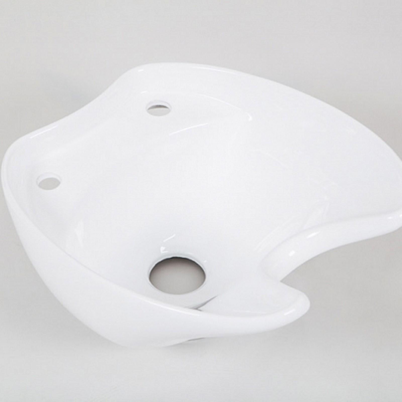 Белая глубокая раковина для парикмахерской мойки, изготовлена из керамики.