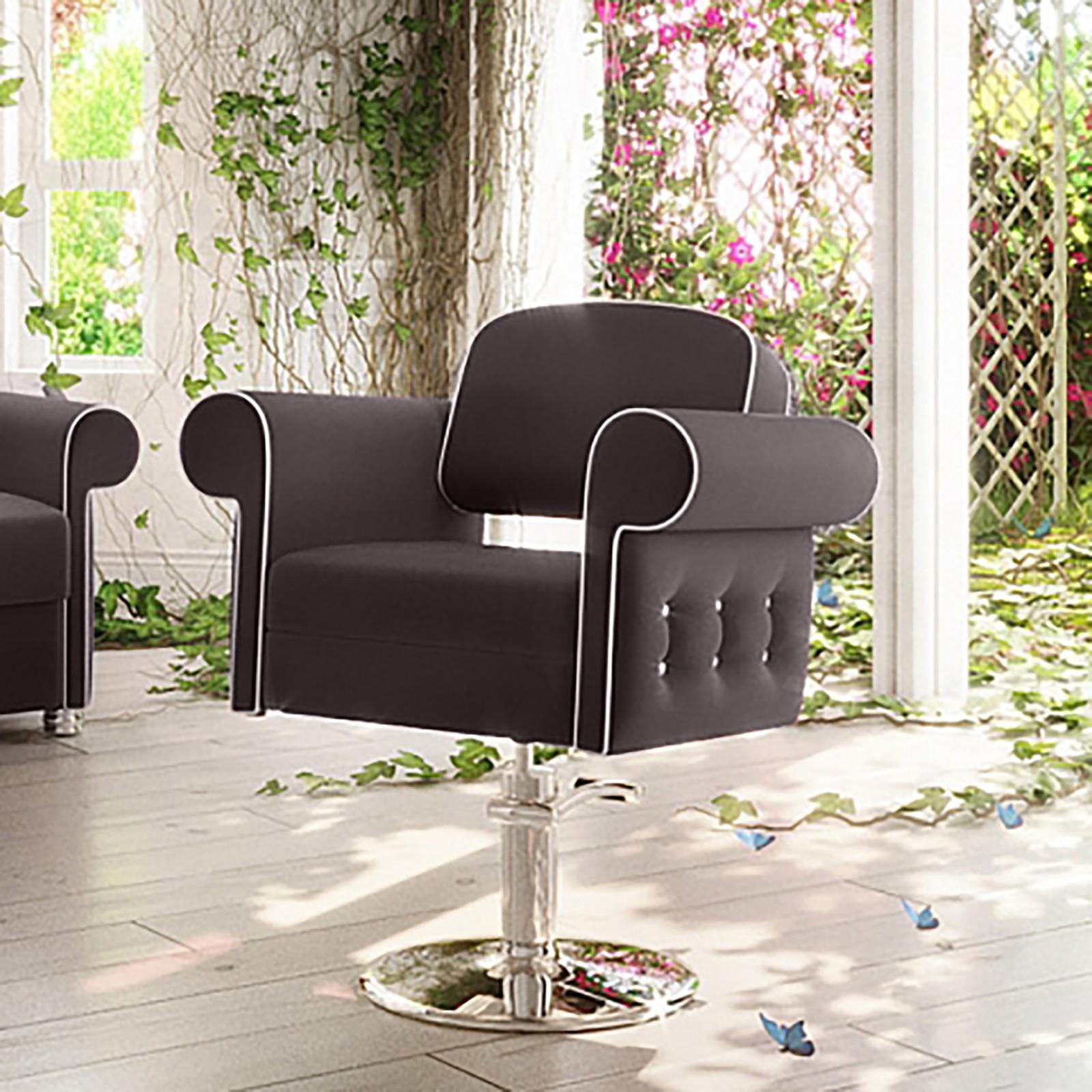 Парикмахерское кресло VENETTO — удобная и вместительная модель в классическом стиле с широкими округлыми подлокотниками. Материал отделки — износостойкая экокожа, основание — хромированный круг с пневматическим подъемником.