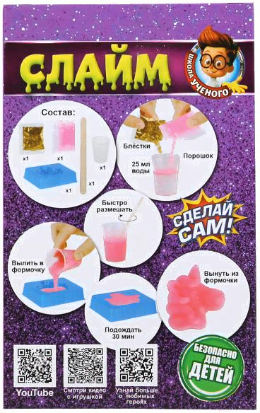 • Состав набора блестки, ложка/палочка, мерный стаканчик, основа для замешивания, формочки