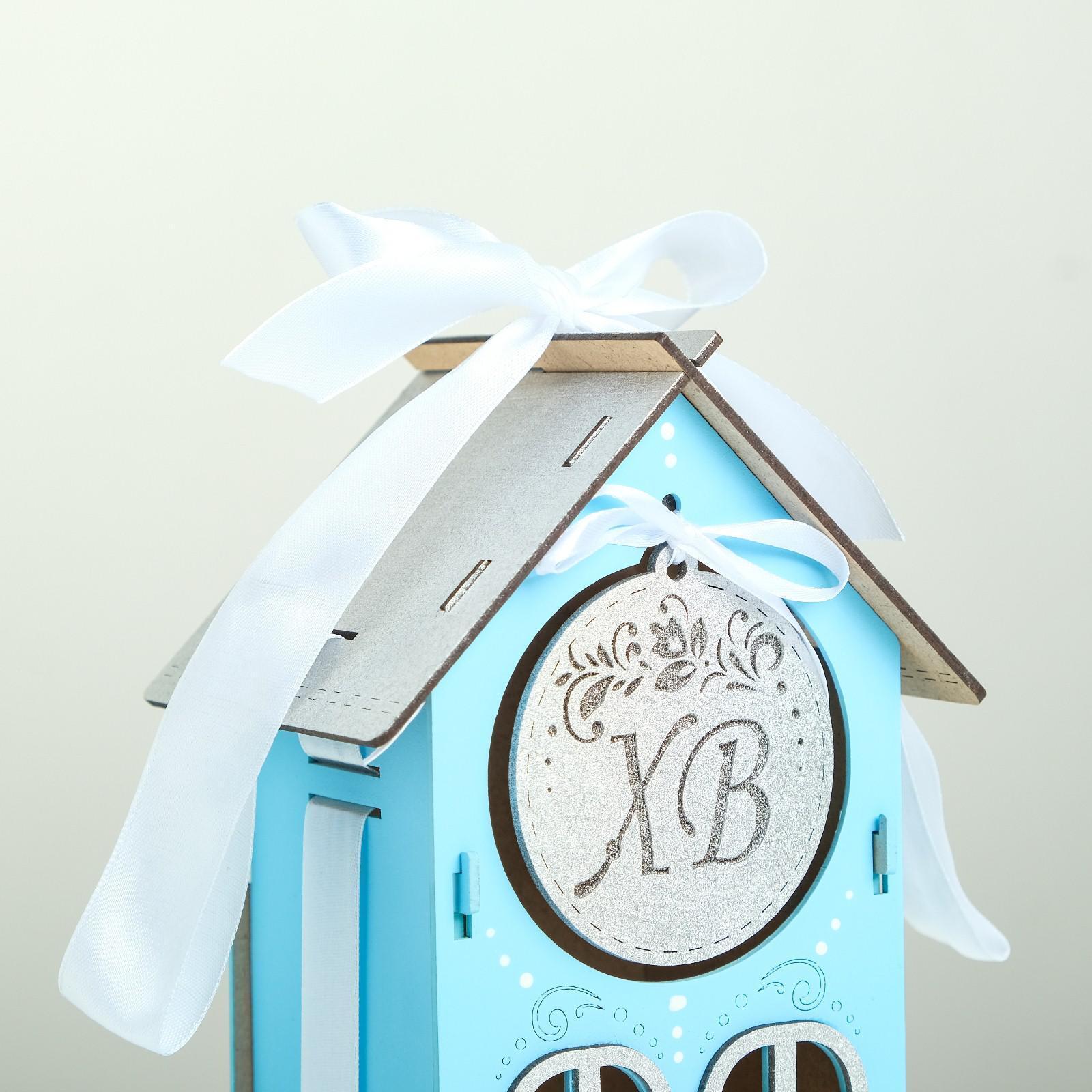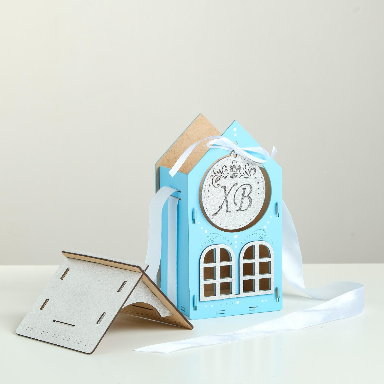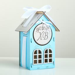 Коробка деревянная, 13.5×11.5×21 см "ХВ", подарочная упаковка, голубой