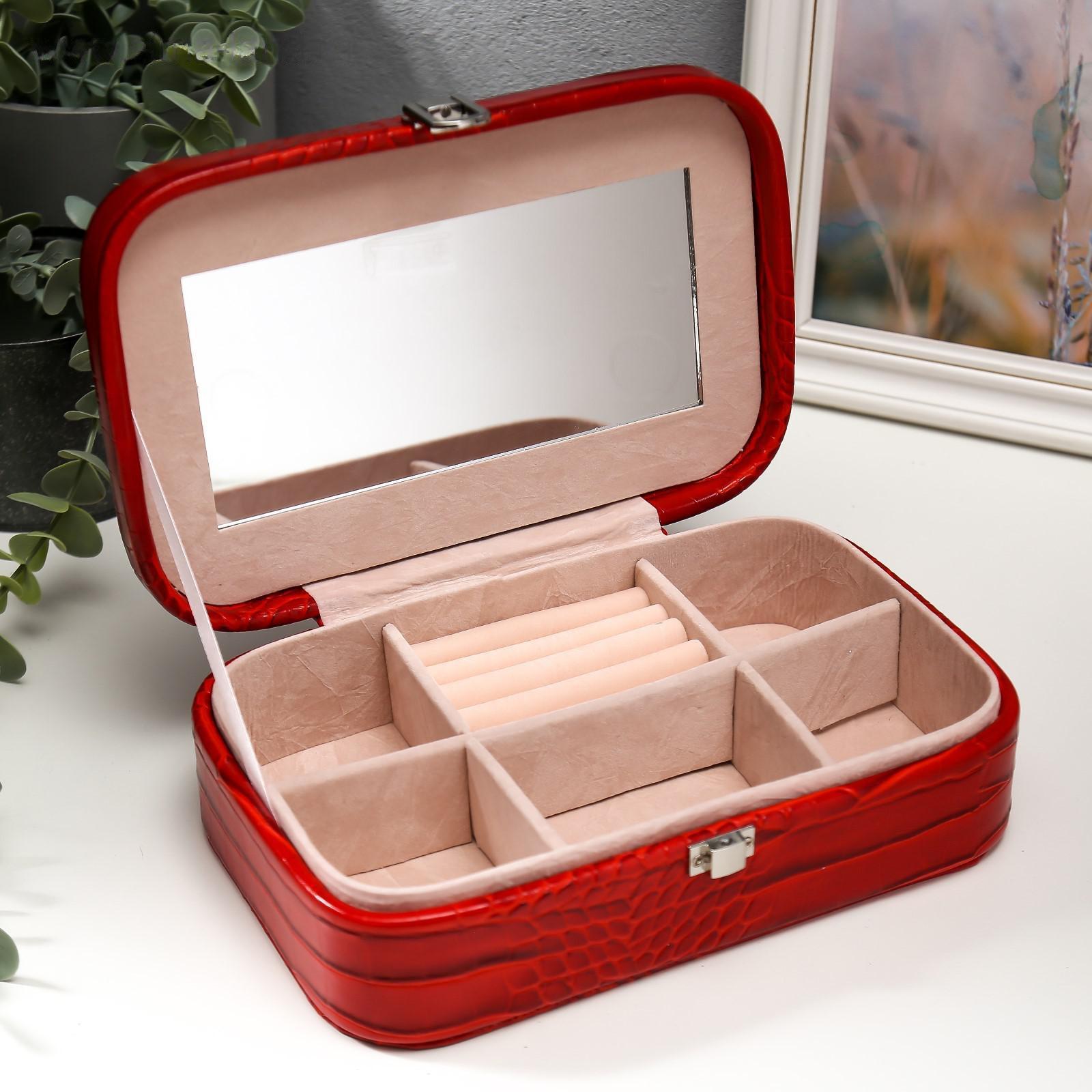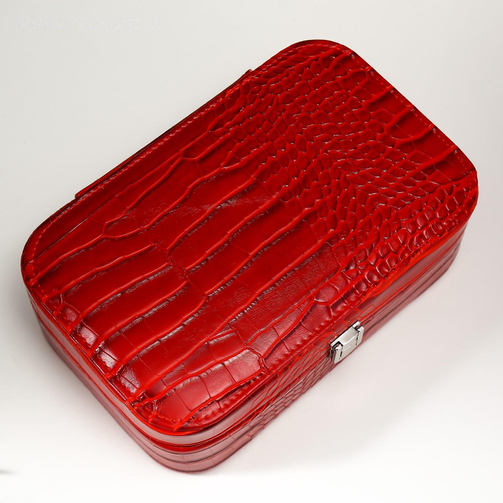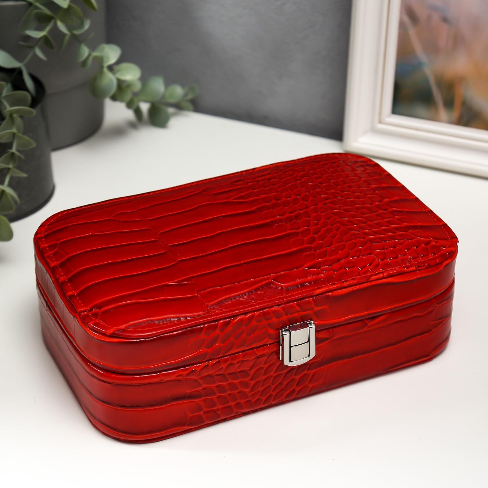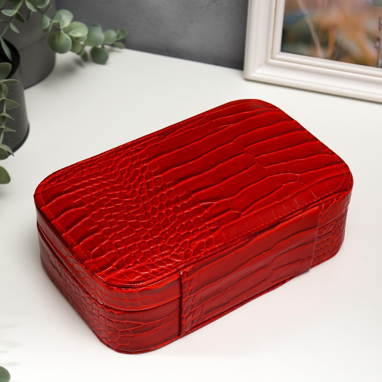 Шкатулка кожзам для украшений "Кожа питона" красная матовая 7х22,5х14,5 см