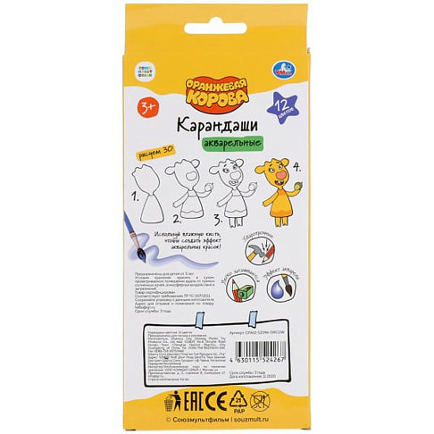 Акварельные карандаши «Оранжевая корова» ТМ «Умка» станут отличным подарком для юных художников:
