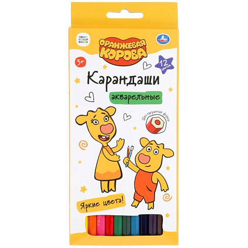 Карандаши цветные Оранжевая корова 12 цветов акварельные Умка CPA12-52096-ORCOW