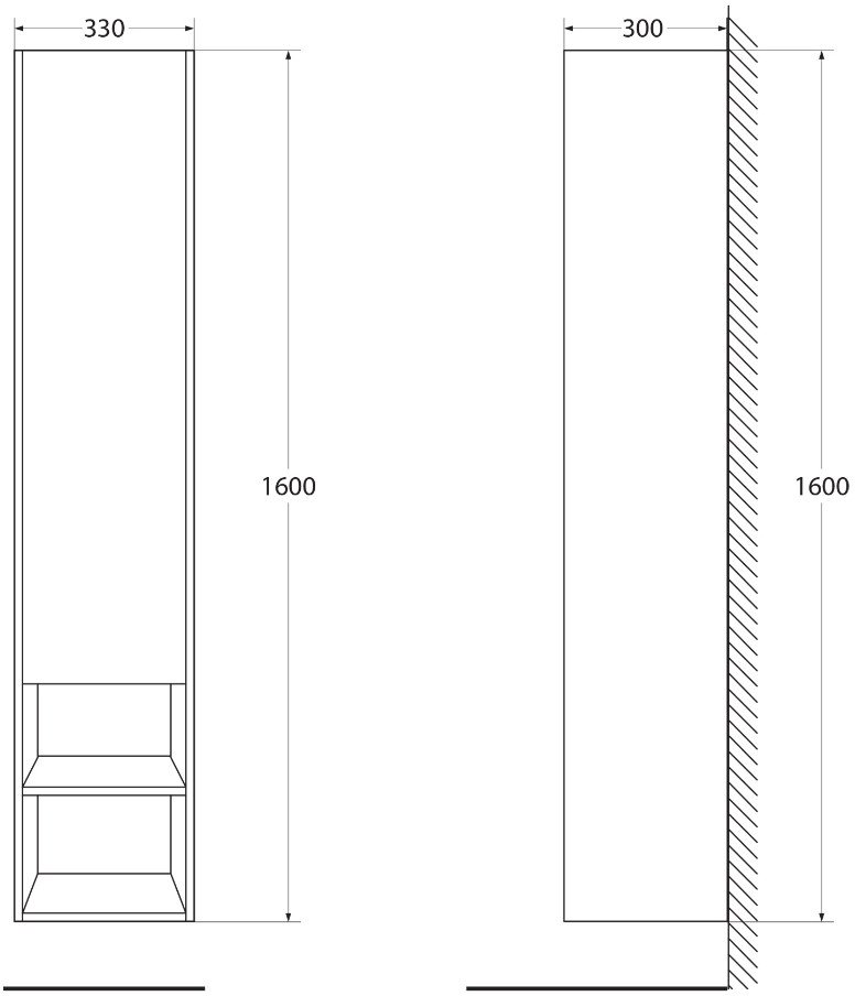 Шкаф подвесной, с одной распашной дверцами с доводчиками, и одной открытой полкой, правосторонний