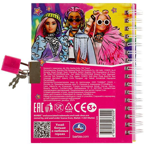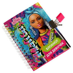 Красочной блокнот, украшенный изображением Барби, станет верным другом для юной леди. В нём можно рисовать или писать заметки, а замочек надёжно защитит секреты своей хозяйки