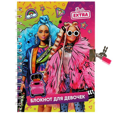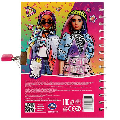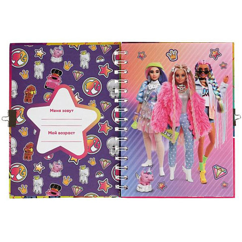 Красочной блокнот, украшенный изображением Барби, станет верным другом для юной леди. В нём можно рисовать или писать заметки, а замочек надёжно защитит секреты своей хозяйки