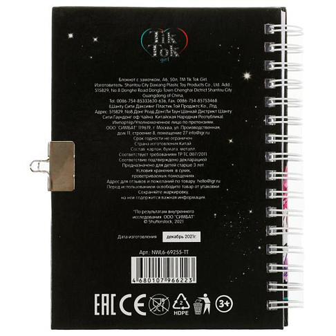 Блокнот с замочком, А6, 50 листов TIK TOK GIRL NWL6-69255-TT
