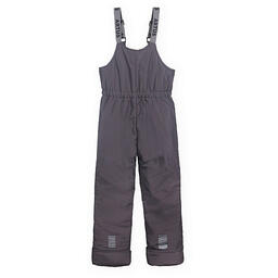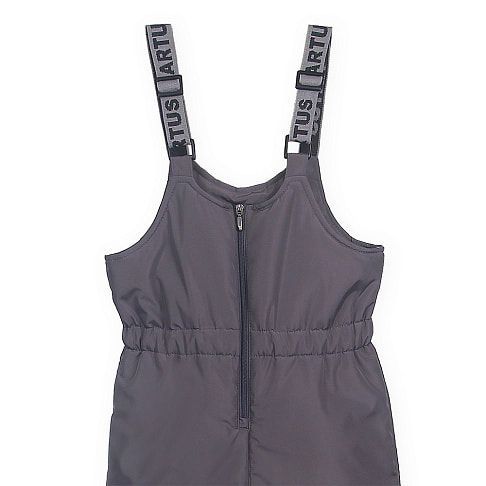 Полукомбинезон для девочки младшего школьного возраста, утеплённый. Бретели с возможностью регулировки длины, центральная застёжка на молнии. Низ брюк с возможностью подворота. Ткань верха с водоотталкивающей пропиткой.