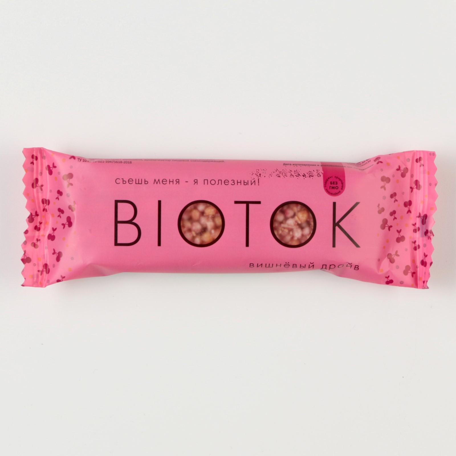 Полезный и вкусный батончик мюсли «Biotok» со вкусом вишни – оптимальный выбор для сладкоежек, которые придерживаются правил здорового питания. Компактный десерт объединил смесь мелко измельченных овсяных, ржаных, пшеничных и ячменных хлопьев. Набор полезных углеводов дополнен хрустящими рисовыми и кукурузными шариками. Натуральная вишня – главный вкусовая нота этого батончика.
