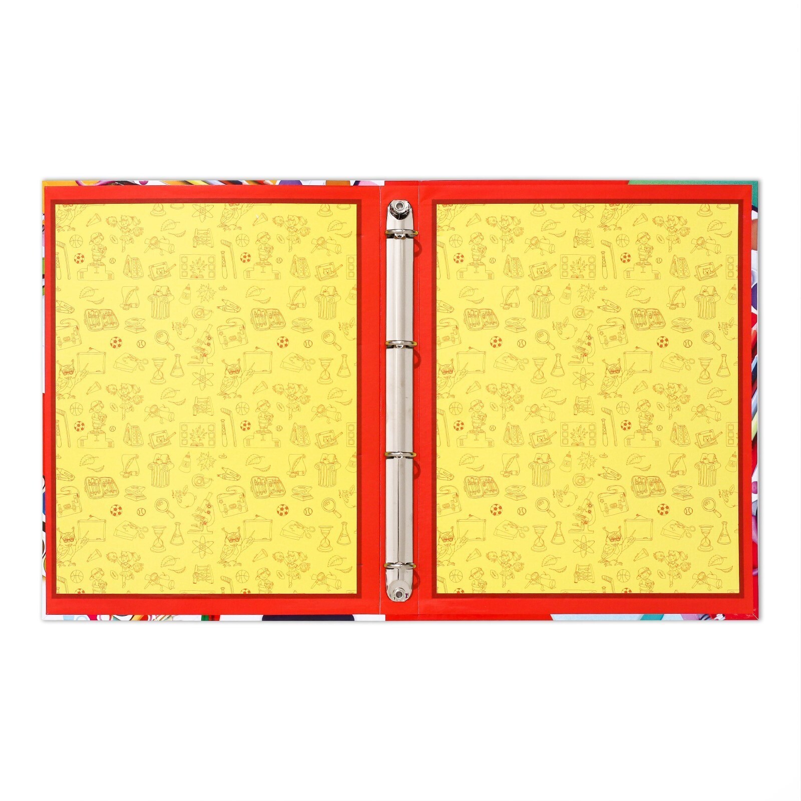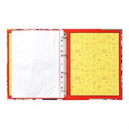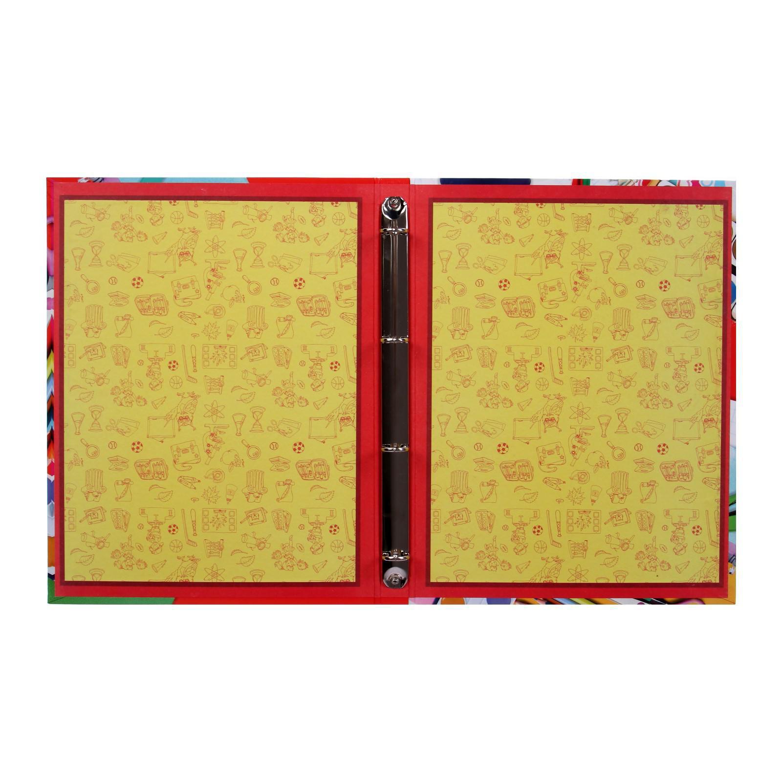 В набор входит: папка на кольцах и 10 вкладышей. Обложка выполнена из переплетного картона плотностью 1,5 мм, внутри есть четыре кольца, на которые следует цеплять файлы.