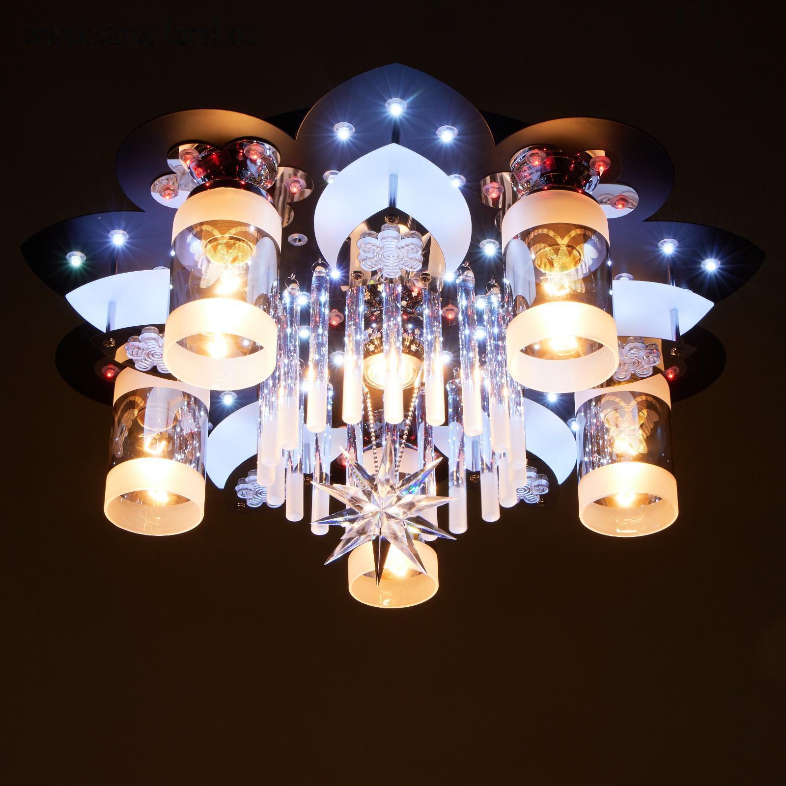 Люстра с ПДУ 51007/5 5х40Вт Е27+1х20Вт G5.3 хром/черный LED 50х50х21 см