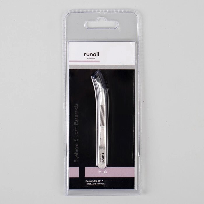 Пинцет загнутый, широкий, 8,3 см, цвет серебристый, RU-0617