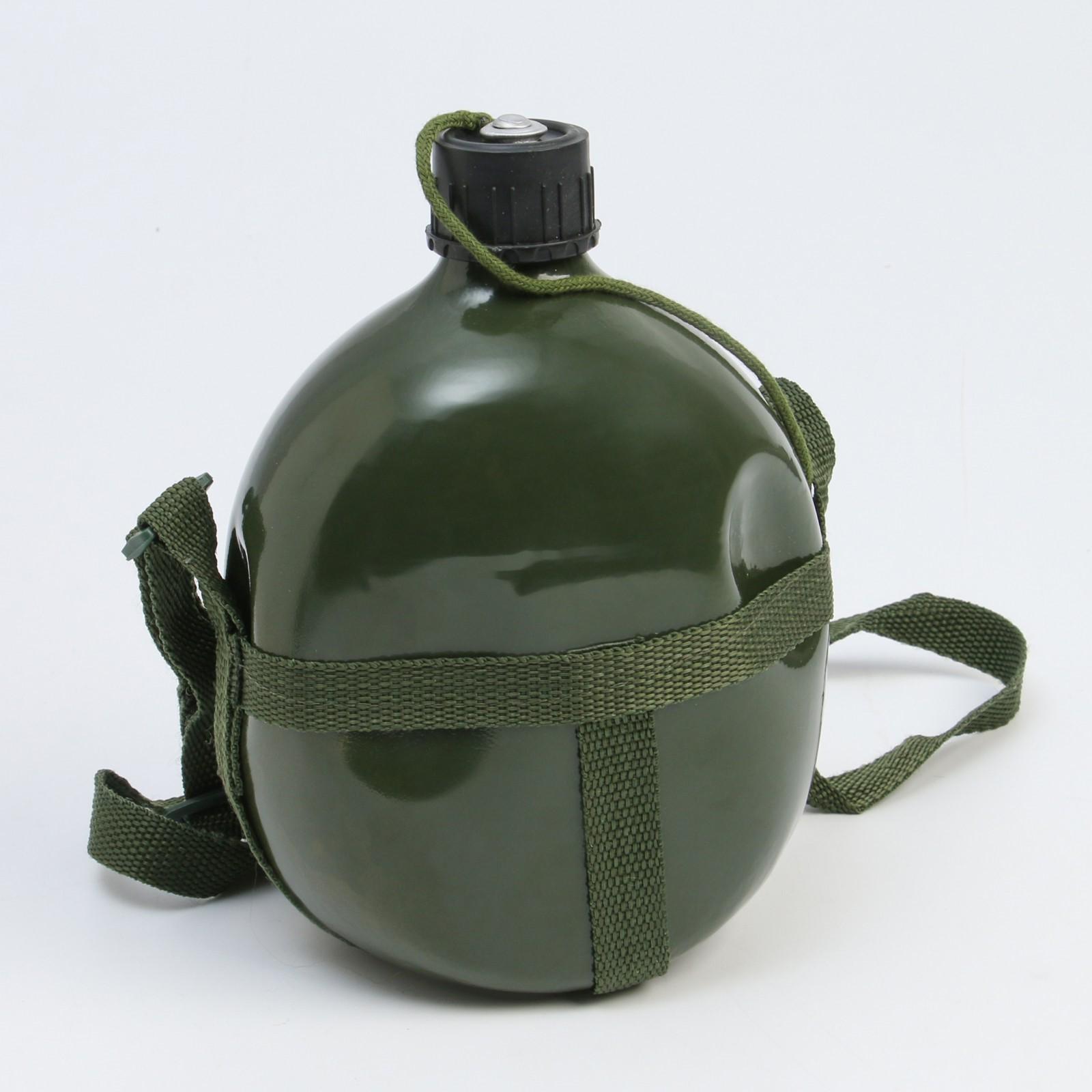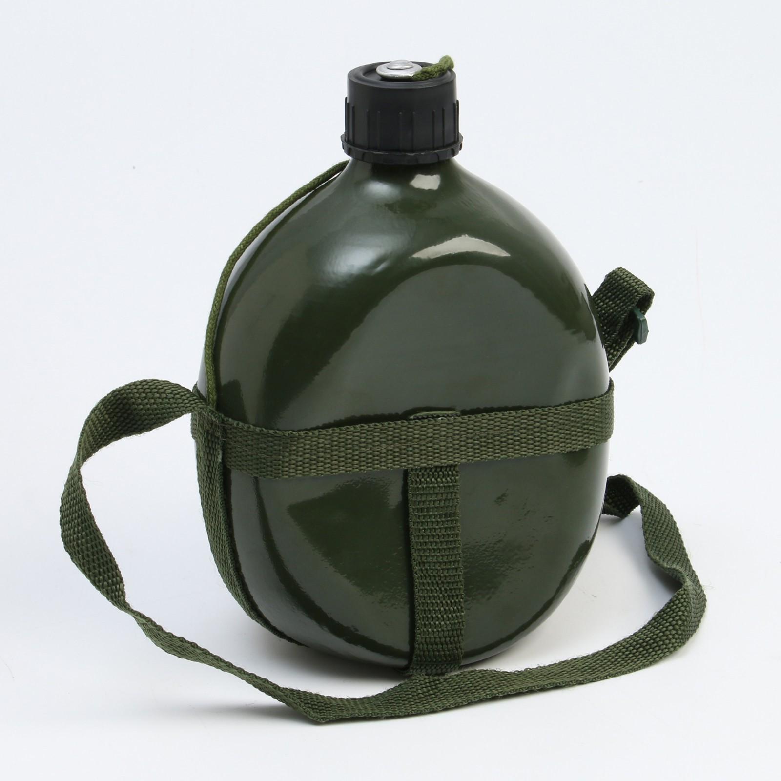 Фляга походная 1500 мл, тёмно-зелёная с чёрной крышкой, пластик, 13.5 × 8 см