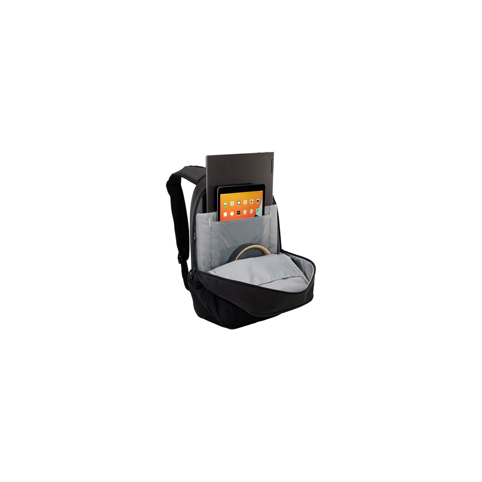 Спеціальне відділення для ноутбука 15.6" та окрема кишеня для планшета. Виготовлено з поліестеру та каретної тканини, що повністю складаються з переробленої сировини. У передній кишені зручно зберігати предмети, які повинні завжди бути під рукою, наприклад телефон або жувальну гумку. Внутрішня кишеня для зручного зберігання зарядних пристроїв і кабелів запобігає їх сплутуванню. Сітчасті бічні кишені забезпечать зручний доступ до пляшки з водою.