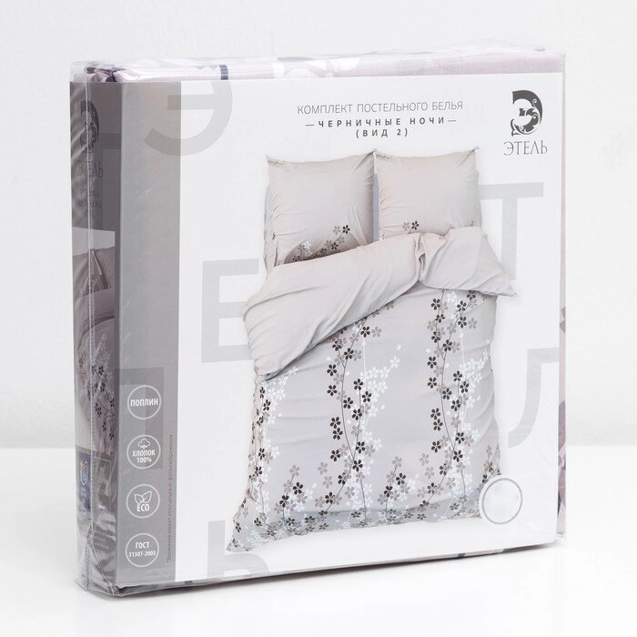 Постельное бельё "Этель" 2 сп., Черничные ночи (вид 2), размер 175х215 см, 200х220 см, 70х70 см - 2 шт., 100%