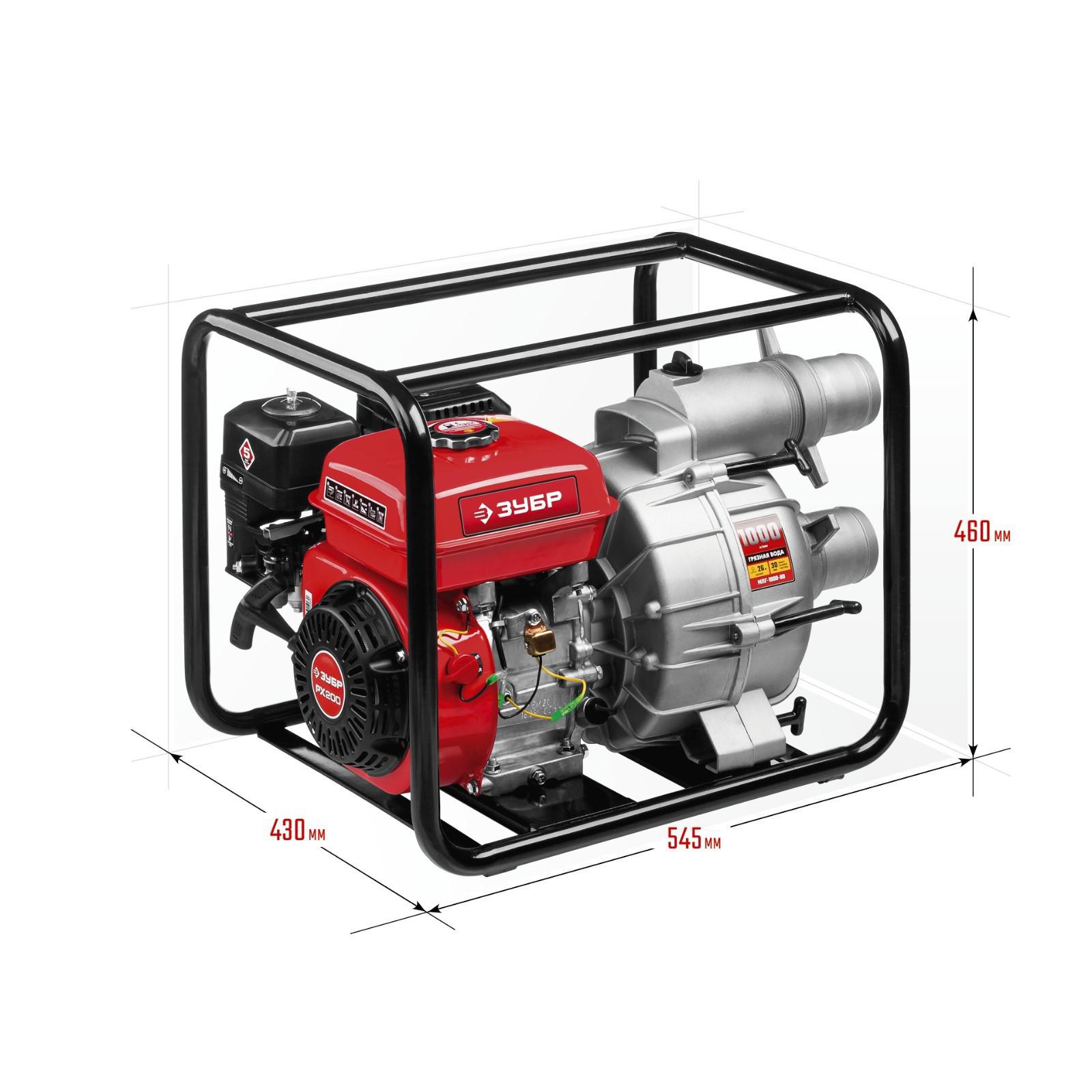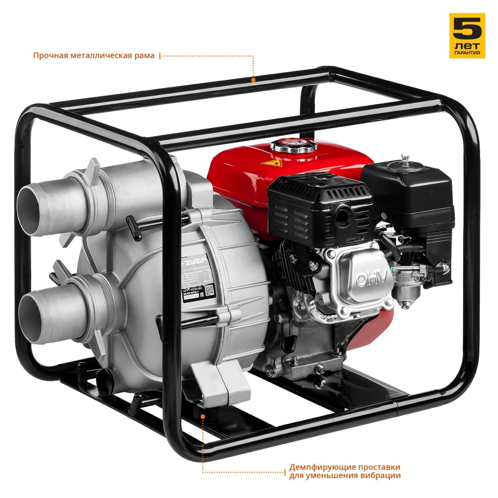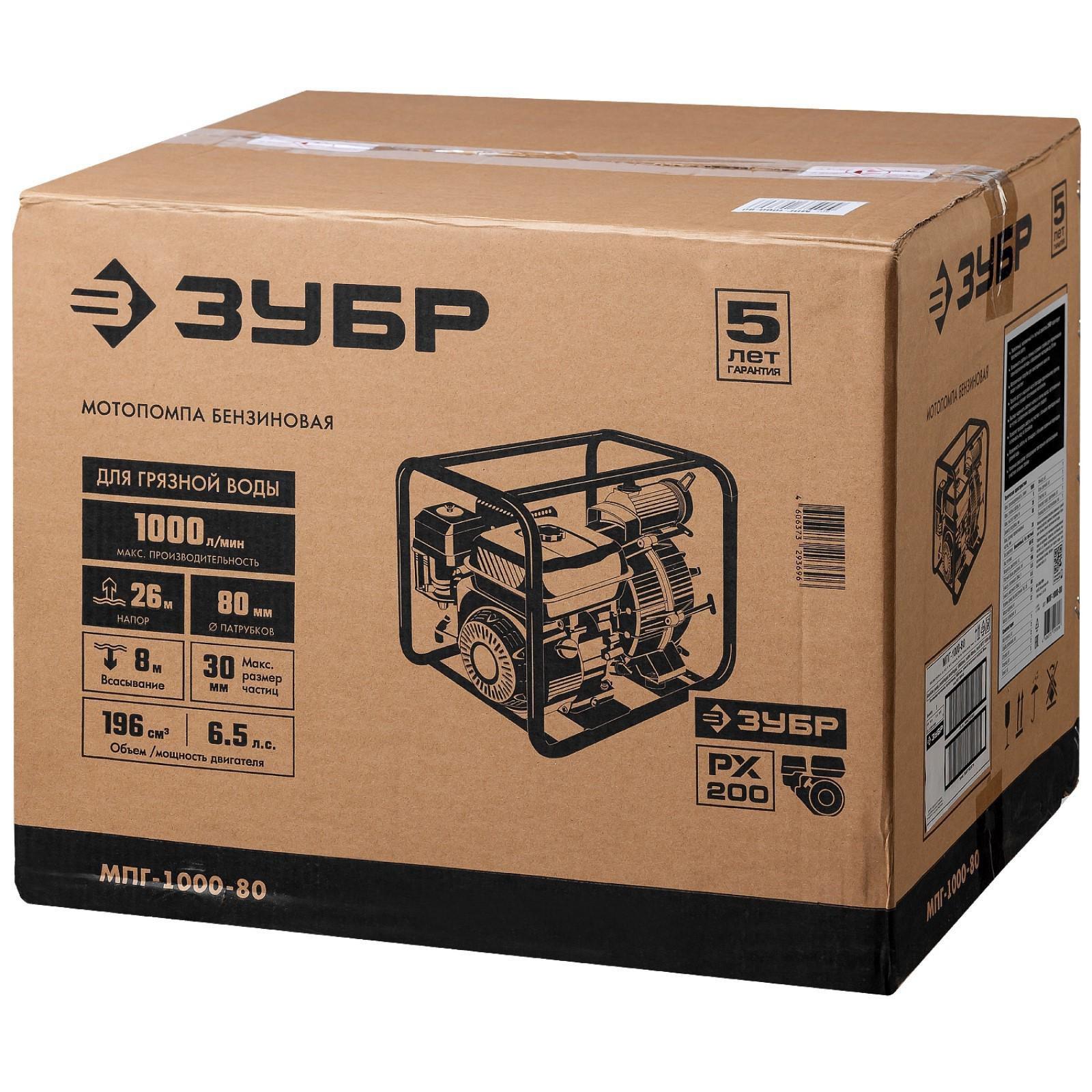 Мотопомпа для грязной воды ЗУБР МПГ-1000-80, 4Т, 4.8 кВт, 1000 л/мин, d=80 мм, подъем 26 м