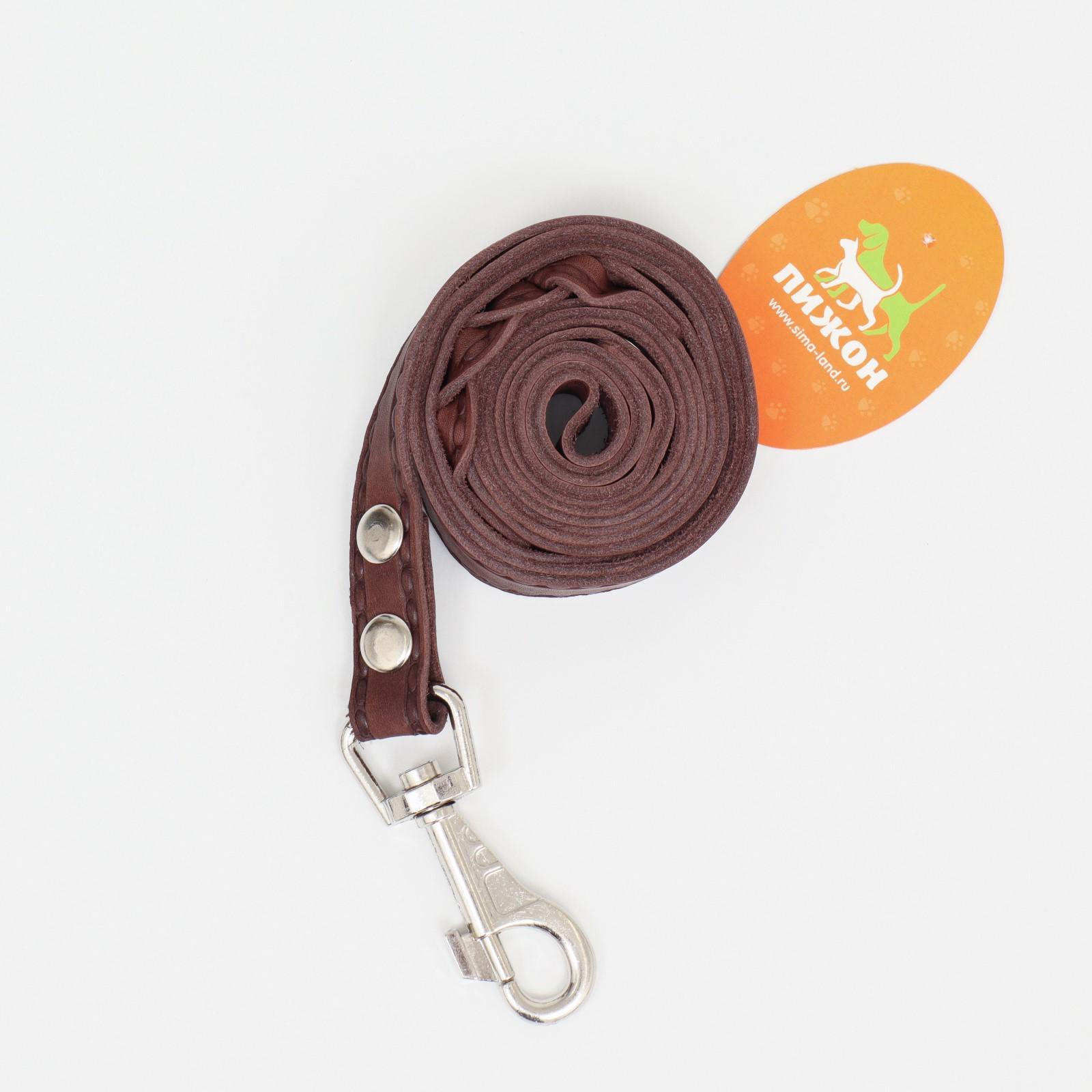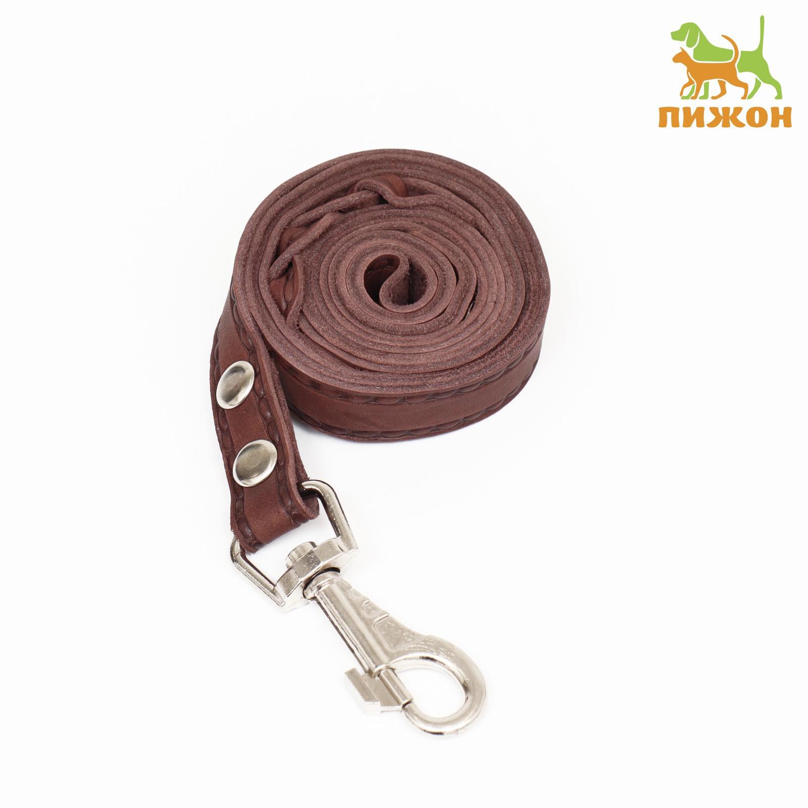Поводок кожаный однослойный длинный, 2 м х 2 см, коричневый
