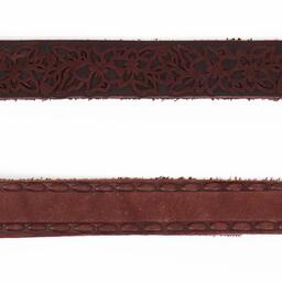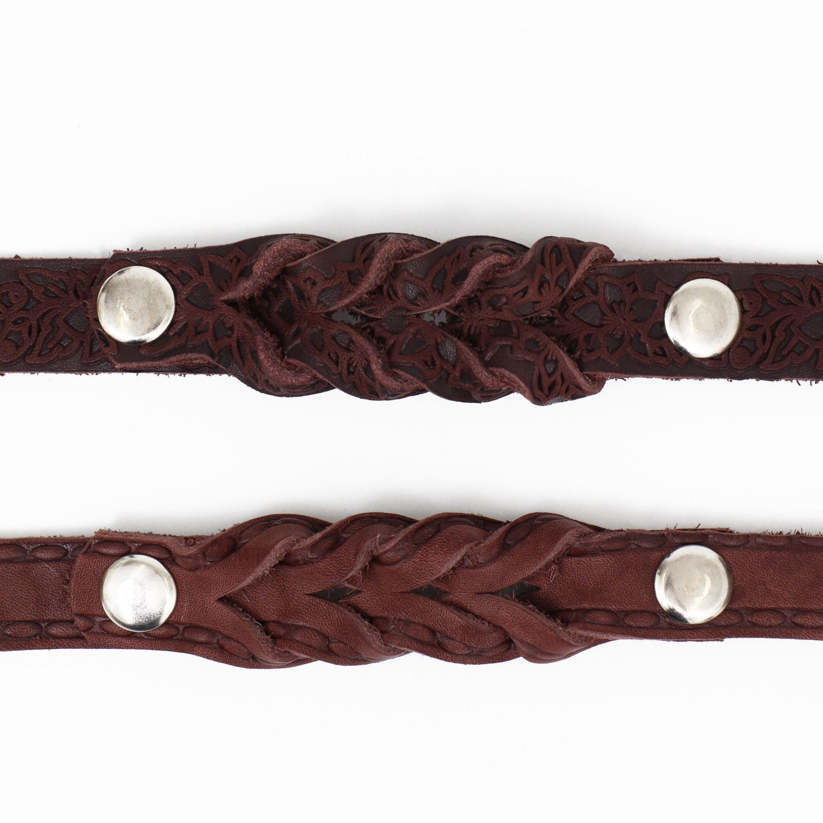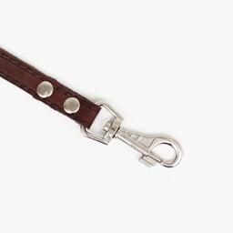 Поводок изготовлен из полосы кожи, прочный и эластичный. Для захвата предусмотрена удобная петля. Чтобы пристегнуть поводок к ошейнику, предусмотрен надежный карабин.