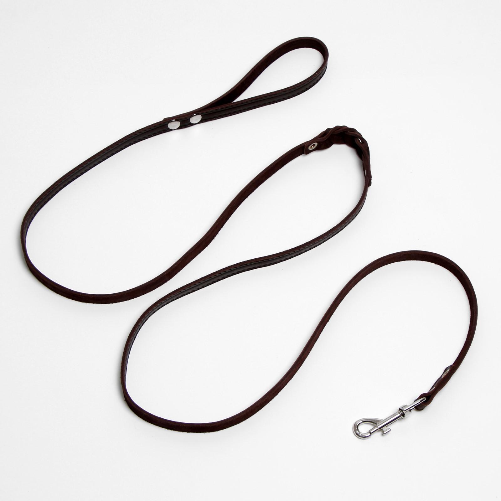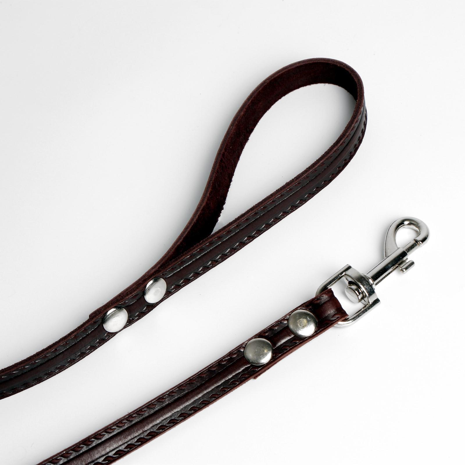 Поводок кожаный однослойный тиснёный, удлиненный, 2 м х 1,6 см коричневый