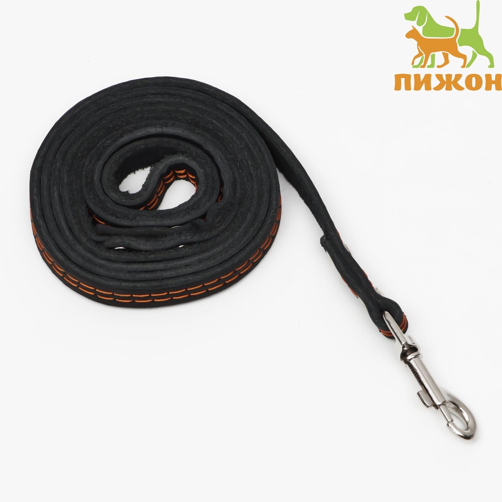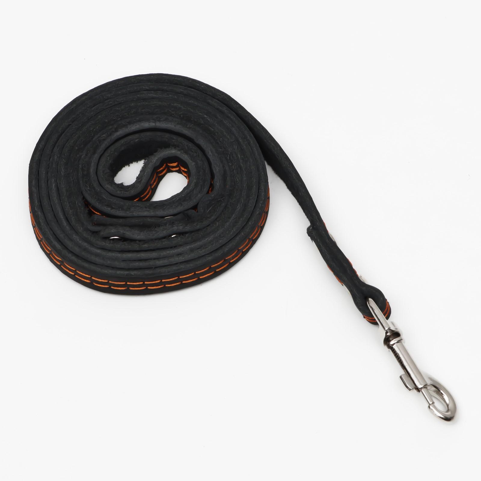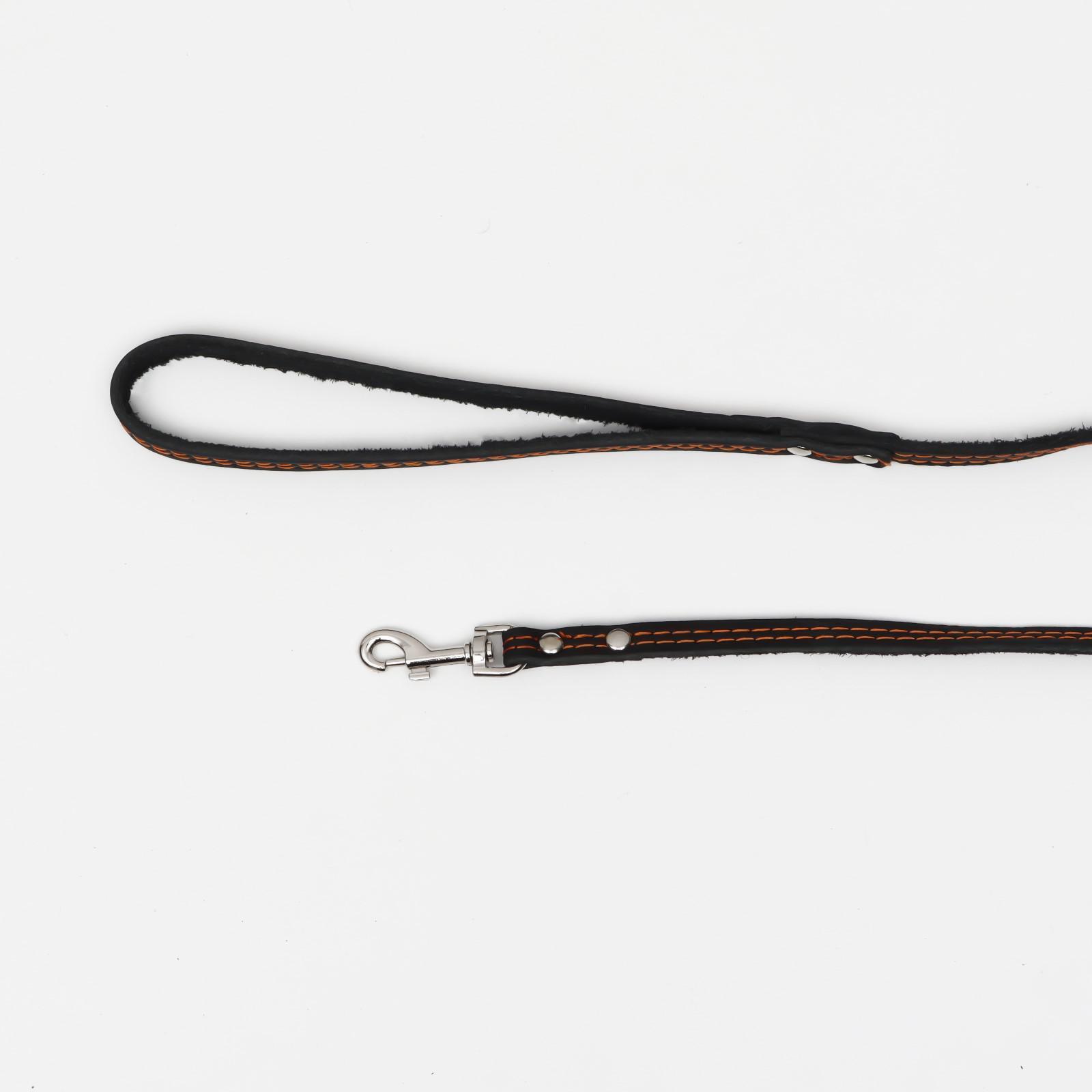 Поводок кожаный однослойный, простроченный, 1.37 м х 1 см, чёрный