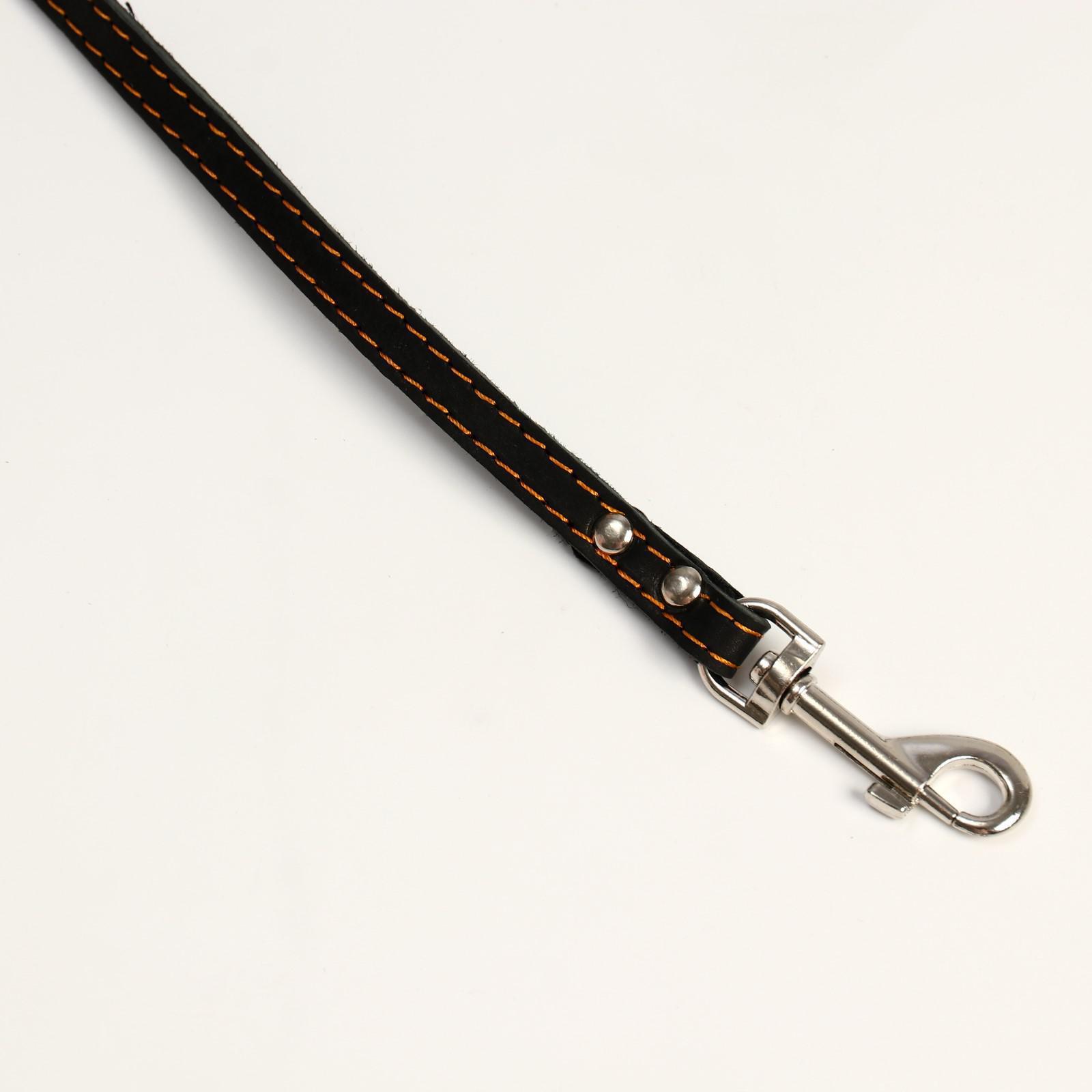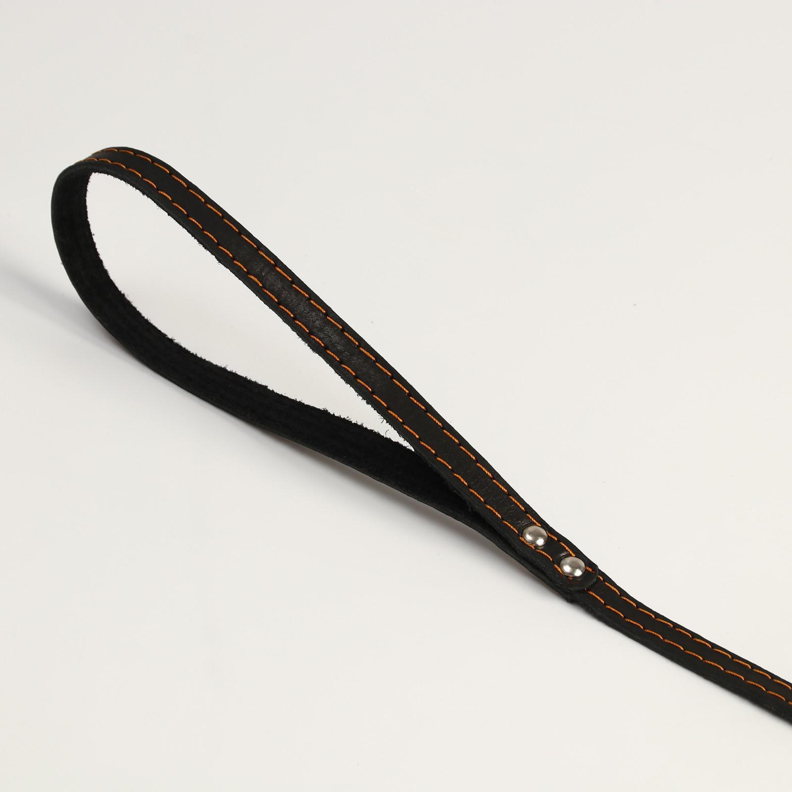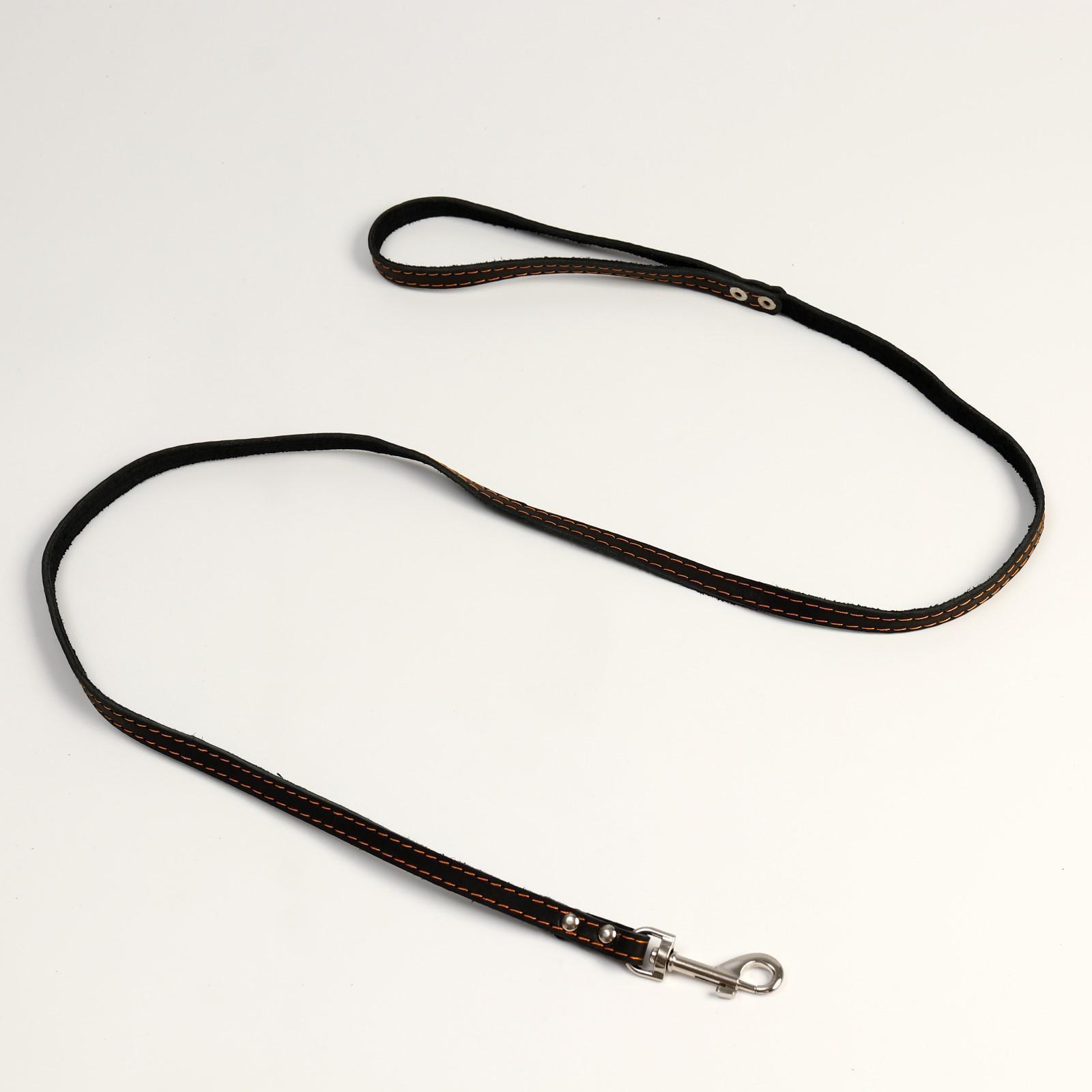 Поводок кожаный однослойный, простроченный, 1.41 м х 1.2 см, черный