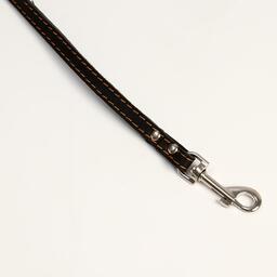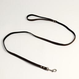 Поводок изготовлен из полосы кожи, прочный и эластичный. Для захвата предусмотрена удобная петля. Чтобы пристегнуть поводок к ошейнику, предусмотрен надежный карабин.