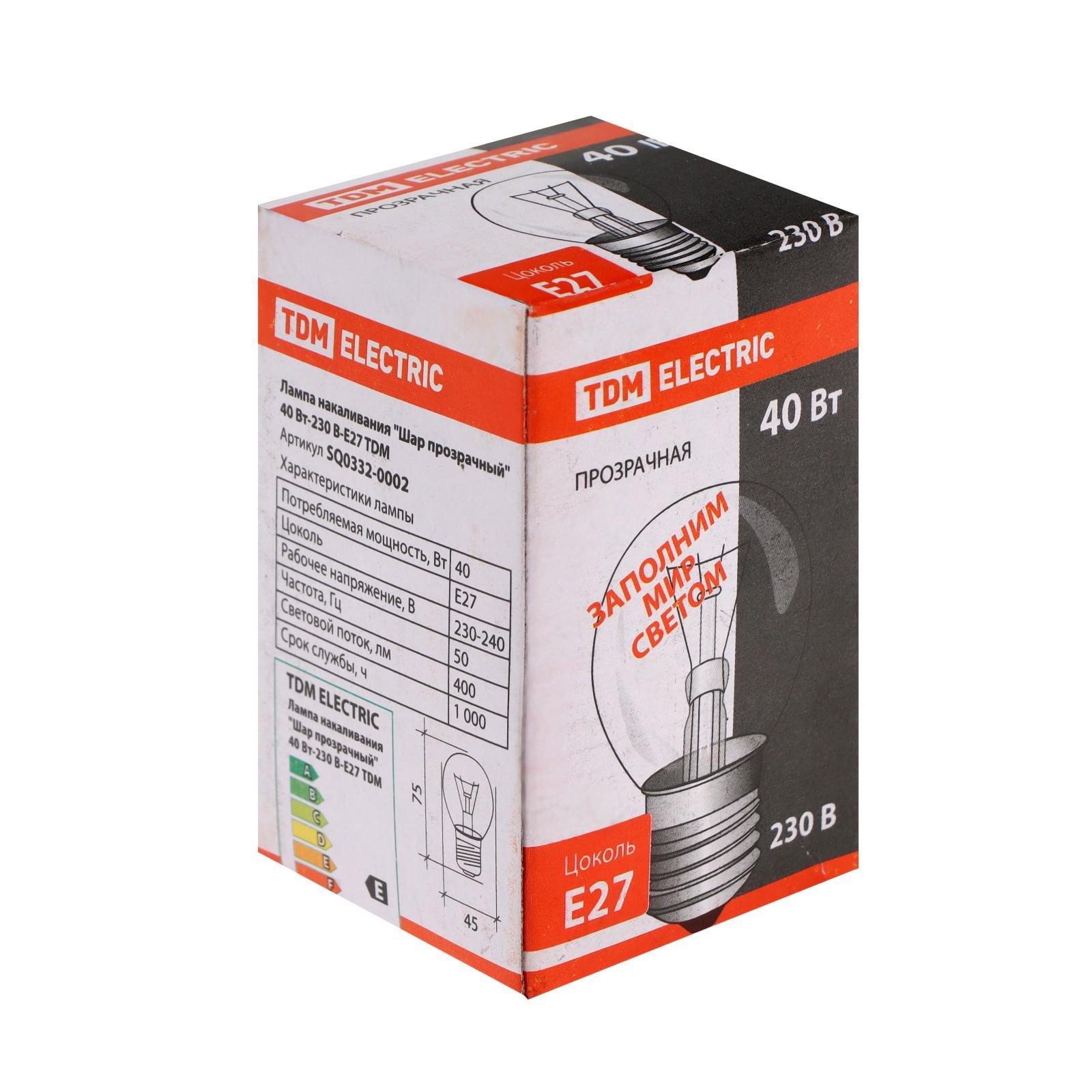 Лампа накаливания TDM "Шар прозрачный", 40 Вт, Е27