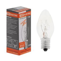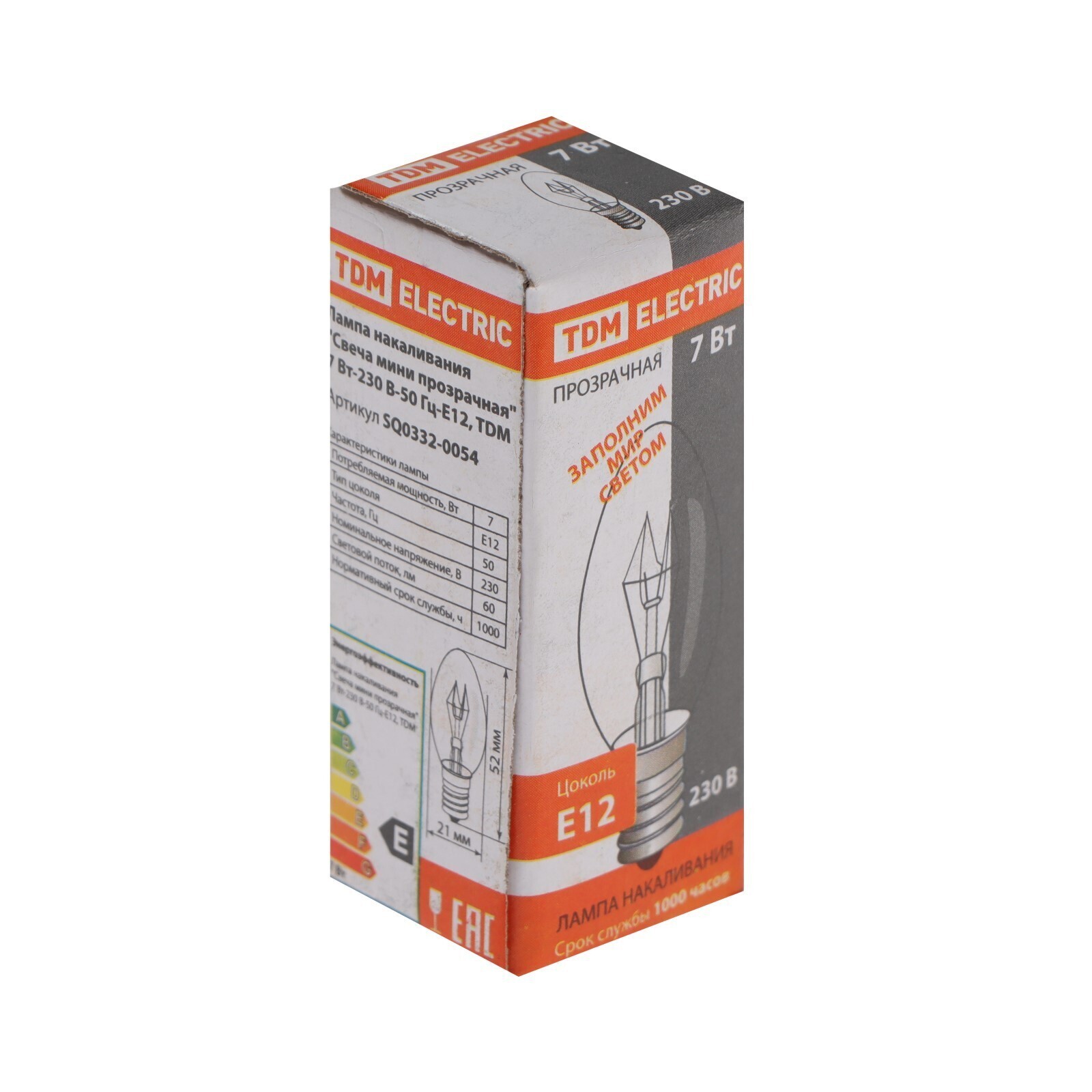Лампа накаливания TDM для ночников "Свеча мини прозрачная", 7 Вт, 50 Гц, Е12